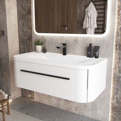 Тумба c раковиной подвесная Итана Арби 100 с радиусным фасадом Эмаль Белый матовый