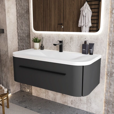 Тумба c раковиной подвесная Итана Арби 100 с радиусным фасадом Эмаль Графит