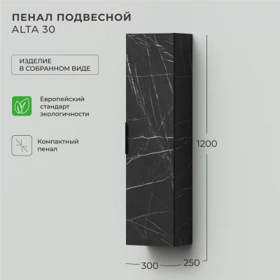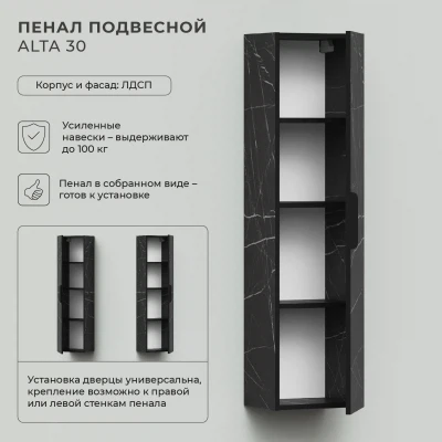 Пенал подвесной Итана Alta 30 универсальный Камень Пьетра Гриджиа черный