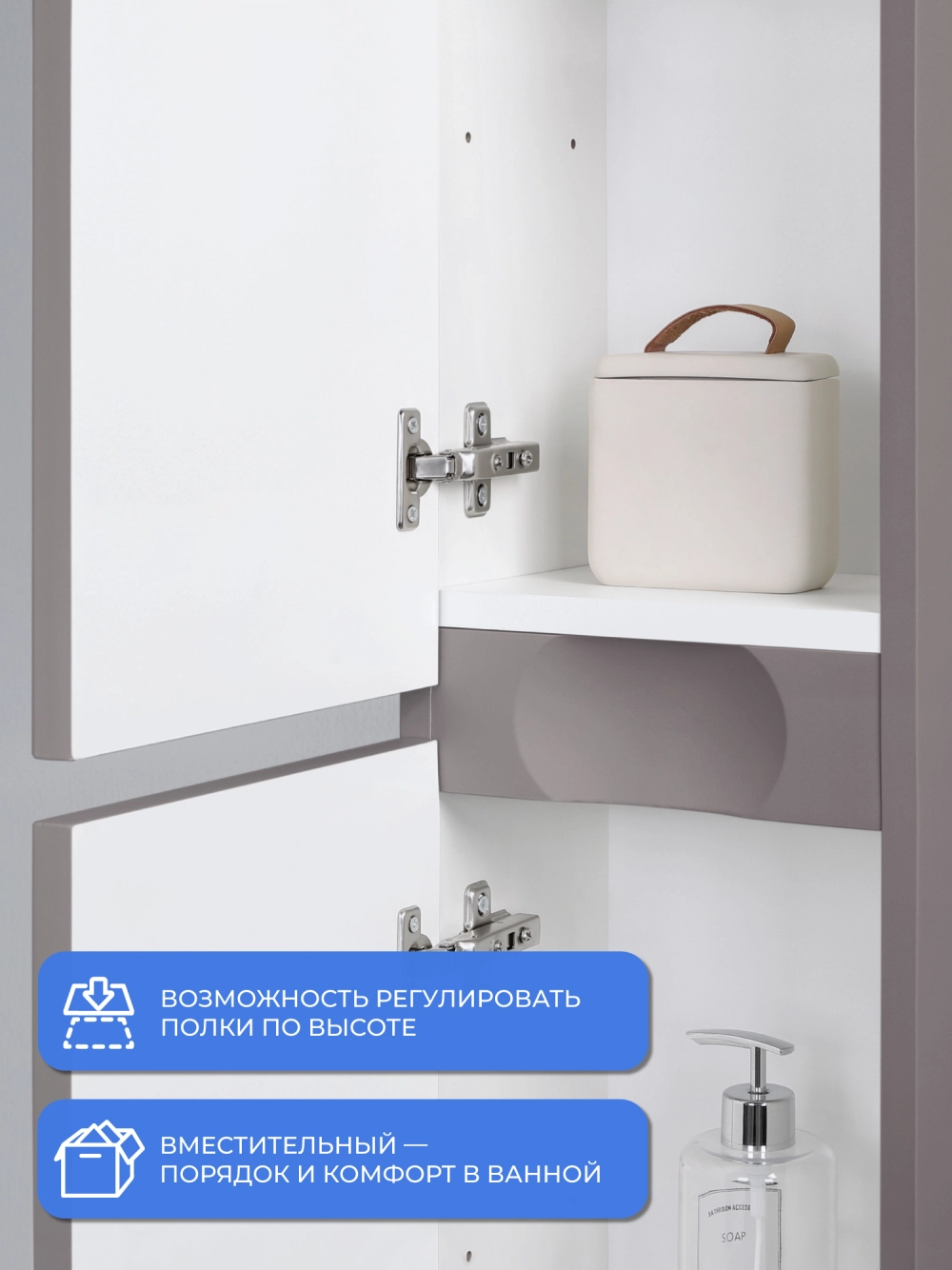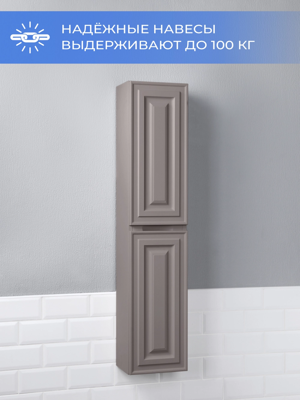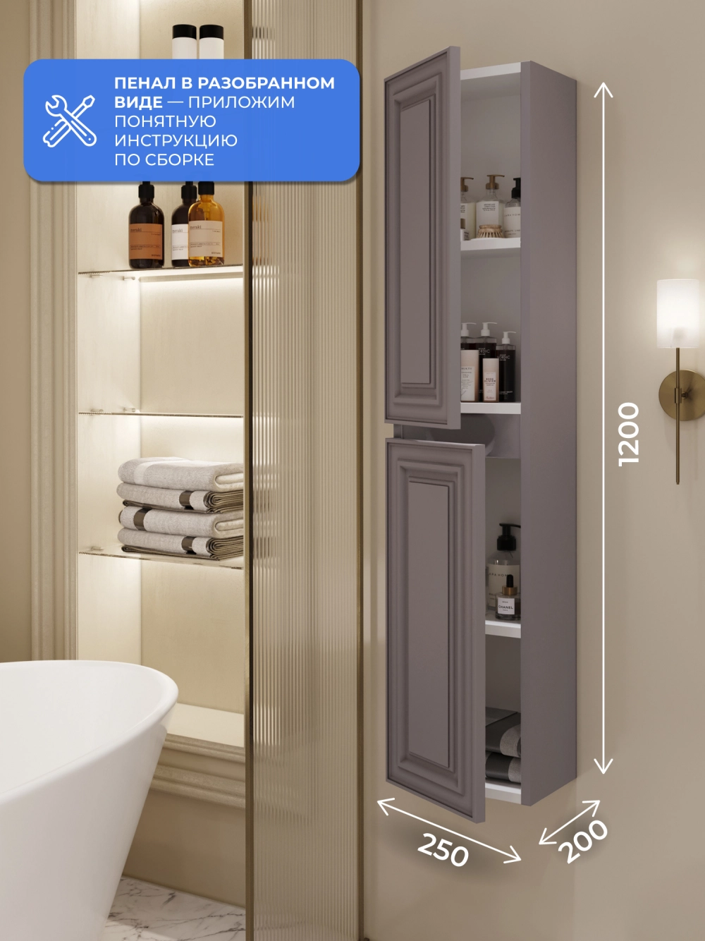 Пенал в ванную из коллекции Verona 25 - это универсальное решение для современной ванной. Шкаф-пенал поможет создать комфортные условия в ванной комнате. Благодаря его компактным размерам 250х200х1200 и настенному крепежу он занимает немного места и надежно закрепляется. Пенал в ванную изготовлен из МДФ и покрыт ПВХ пленкой, что обеспечивает ему привлекательный внешний вид, а также износостойкость и долговечность. Качественная фурнитура с доводчиками и фрезерованные ручки обеспечивают легкое открывание и плавное закрывание дверок. Внутри пенала для ванной полки, где можно рационально распределить и разместить все необходимые вещи для ванной комнаты. Полки пенала легко переставить, возможно регулировать расстояние их между собой. Для точного выбора пенала в ванную комнату рекомендуем обратиться к схеме замеров, которая находится на фото в карточке товара. Размеры изделия могут отличаться +/-1 см в связи со спецификой производства. Дополнить комплект можно тумбой с раковиной и зеркалом из коллекции Verona. Изделия коллекции качественные, функциональные и органически впишутся в популярные и современные интерьерные решения для ванных комнат.