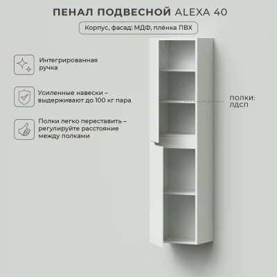 Пенал подвесной Итана Alexa 40 левый Белый глянец