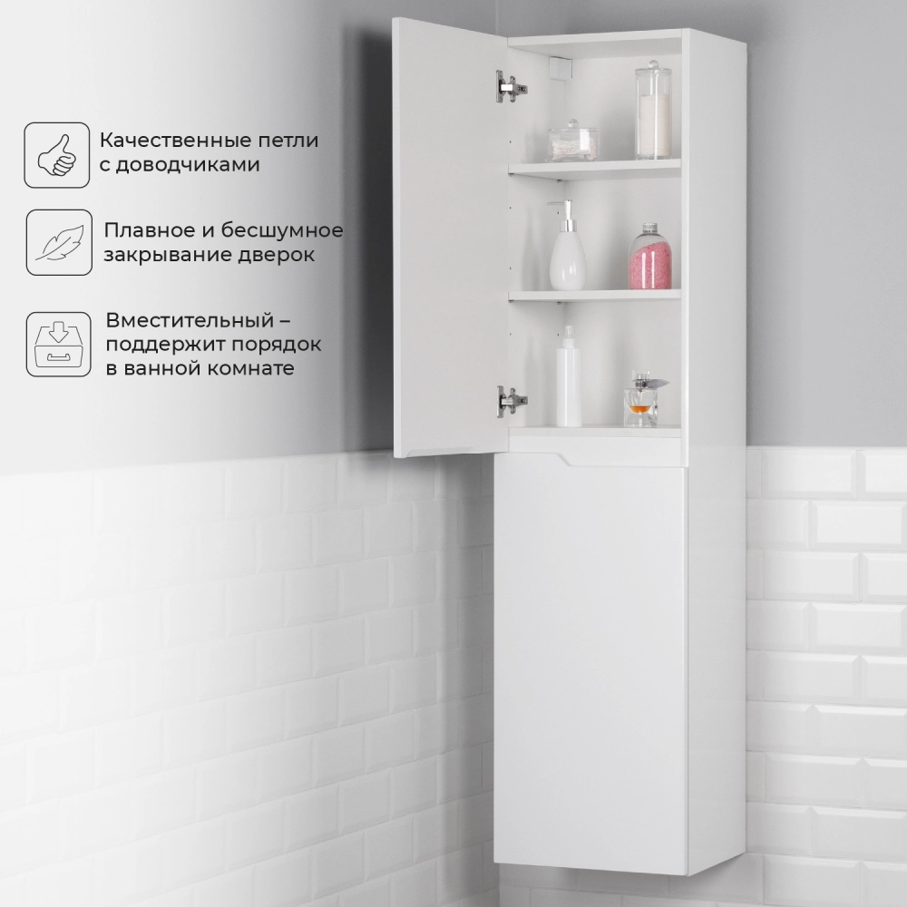 Шкаф пенал в ванную из коллекции Alexa 40 - это сочетание природного декора. Шкаф-пенал поможет создать комфортные условия в ванной комнате. Благодаря его компактным размерам 400х316х1600 и настенному крепежу он занимает немного места и надежно закрепляется. Дверь шкафа для ванной с левосторонним открыванием. Пенал в ванную изготовлен из МДФ и покрыт ПВХ пленкой, что обеспечивает ему привлекательный внешний вид, а также износостойкость и долговечность. Качественная фурнитура с доводчиками обеспечивает легкое открывание и плавное закрывание дверок. Внутри у пенала полки, где можно рационально распределить и разместить все необходимые вещи для ванной комнаты. Полки пенала легко переставить, возможно регулировать расстояние их между собой. Для точного выбора пенала в ванную комнату рекомендуем обратиться к схеме замеров, которая находится на фото в карточке товара. Размеры изделия могут отличаться +/-1 см в связи со спецификой производства. Дополнить комплект можно тумбой с раковиной и зеркалом из коллекции Alexa. Изделия коллекции качественные, функциональные и органически впишутся в популярные и современные интерьерные решения для ванных комнат. Шкаф пенал для ванной комнаты доставляется в предварительно собранном виде, надежно упакован.