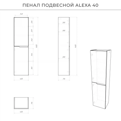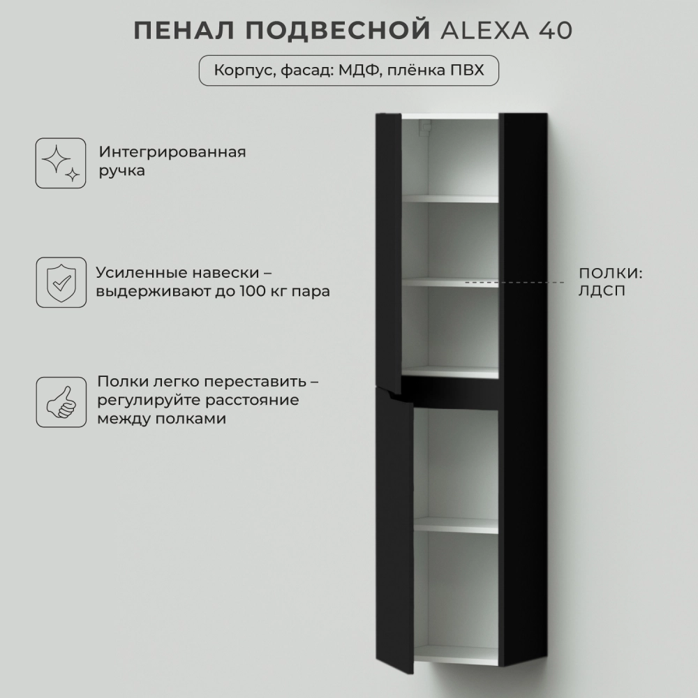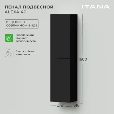 Пенал подвесной Итана Alexa 40 левый Черный навесной