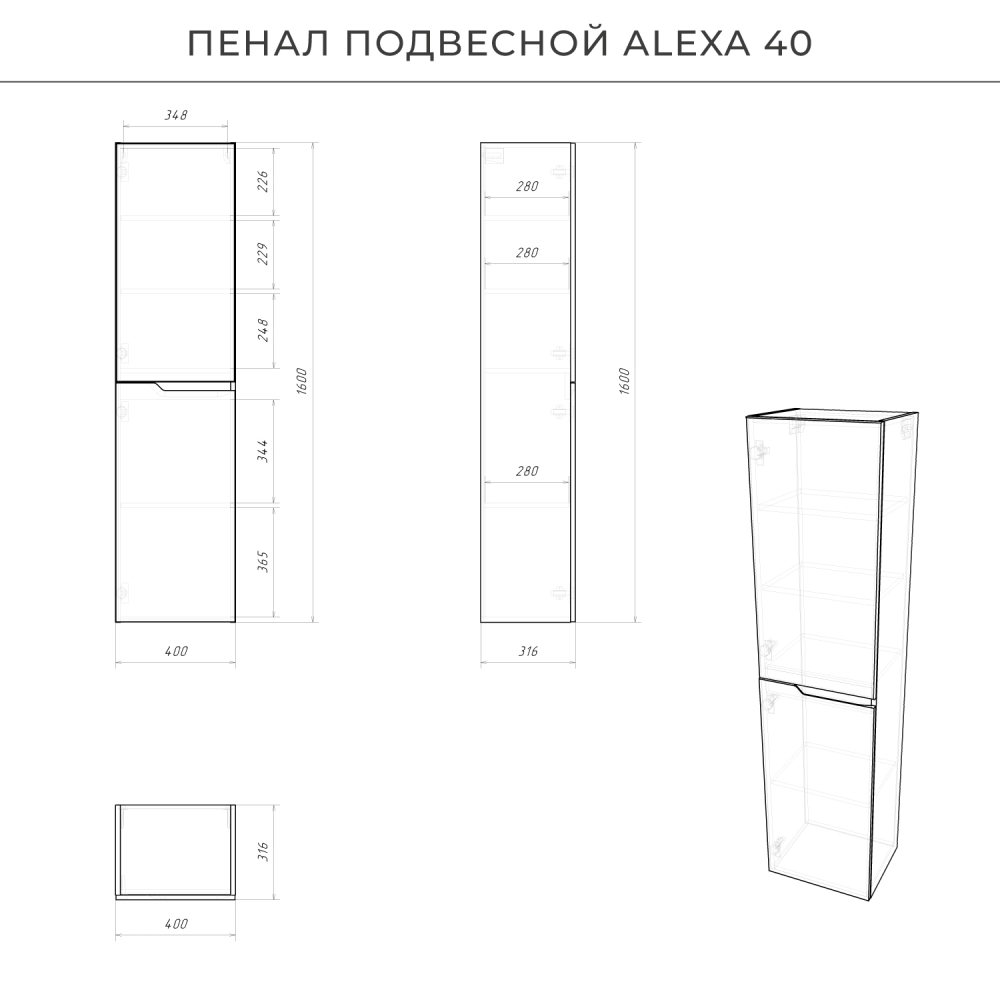 Шкаф пенал в ванную из коллекции Alexa 40 - это сочетание природного декора. Шкаф-пенал поможет создать комфортные условия в ванной комнате. Благодаря его компактным размерам 400х316х1600 и настенному крепежу он занимает немного места и надежно закрепляется. Дверь шкафа для ванной с левосторонним открыванием. Пенал в ванную изготовлен из МДФ и покрыт ПВХ пленкой, что обеспечивает ему привлекательный внешний вид, а также износостойкость и долговечность. Качественная фурнитура с доводчиками обеспечивает легкое открывание и плавное закрывание дверок. Внутри у пенала полки, где можно рационально распределить и разместить все необходимые вещи для ванной комнаты. Полки пенала легко переставить, возможно регулировать расстояние их между собой. Для точного выбора пенала в ванную комнату рекомендуем обратиться к схеме замеров, которая находится на фото в карточке товара. Размеры изделия могут отличаться +/-1 см в связи со спецификой производства. Дополнить комплект можно тумбой с раковиной и зеркалом из коллекции Alexa. Изделия коллекции качественные, функциональные и органически впишутся в популярные и современные интерьерные решения для ванных комнат. Шкаф пенал для ванной комнаты доставляется в предварительно собранном виде, надежно упакован.
