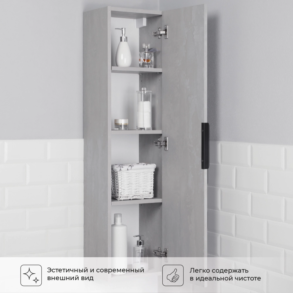 Шкаф пенал в ванную из коллекции Alta 30 - это сочетание природного декора. Шкаф-пенал поможет создать комфортные условия в ванной комнате. Благодаря его компактным размерам 300х250х1200 и настенному крепежу он занимает немного места и надежно закрепляется. Дверь шкафа универсальна, возможно установить на любую сторону, как правое, так и левое открывание. Шкаф для ванной изготовлен из ламинированного ДСП, поэтому выдерживает высокие эксплуатационные нагрузки. Качественная фурнитура с доводчиками обеспечивает легкое открывание и плавное закрывание дверок. Шкаф-пенал настенный состоит из четырех полок, где можно рационально распределить и разместить все необходимые вещи для ванной комнаты. Полки пенала легко переставить, возможно регулировать расстояние их между собой. Для точного выбора пенала в ванную комнату рекомендуем обратиться к схеме замеров, которая находится на фото в карточке товара. Размеры изделия могут отличаться +/-1 см в связи со спецификой производства. Дополнить комплект можно тумбой с раковиной и зеркалом из коллекции Alta. Изделия коллекции качественные, функциональные и органически впишутся в популярные и современные интерьерные решения для ванных комнат. Шкаф пенал для ванной комнаты доставляется в предварительно собранном виде, надежно упакован.