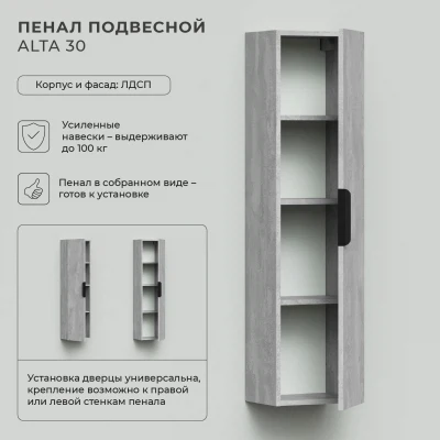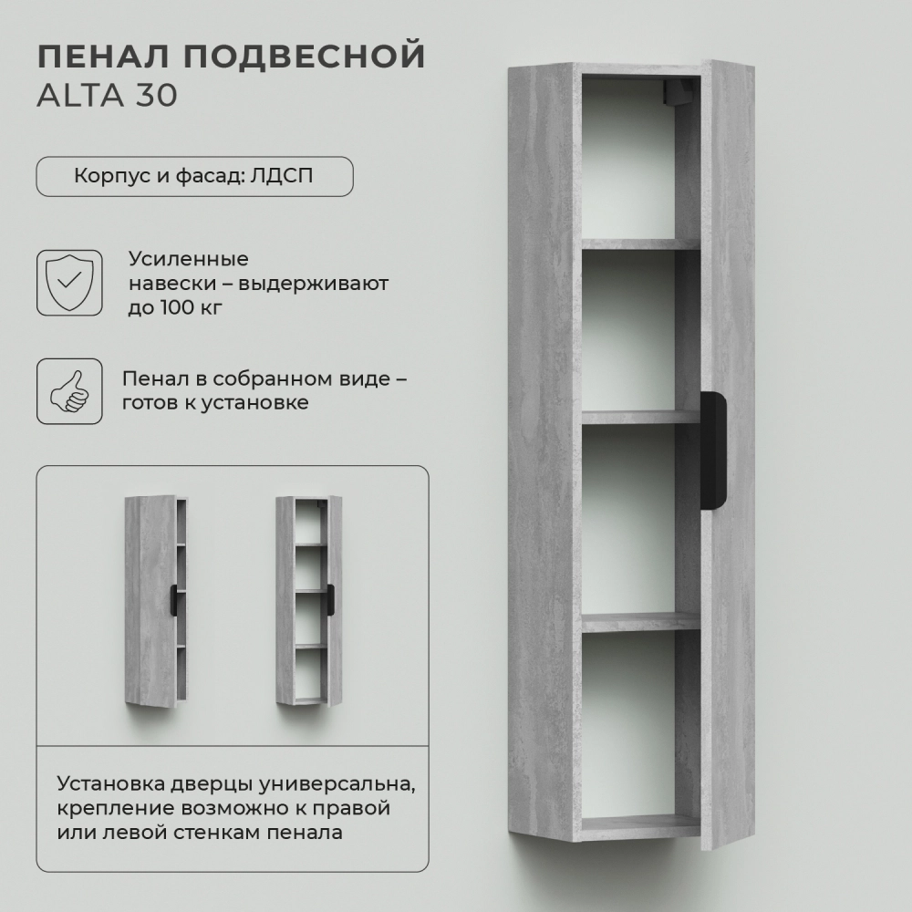 Пенал подвесной Итана Alta 30 универсальный Бетонный Камень