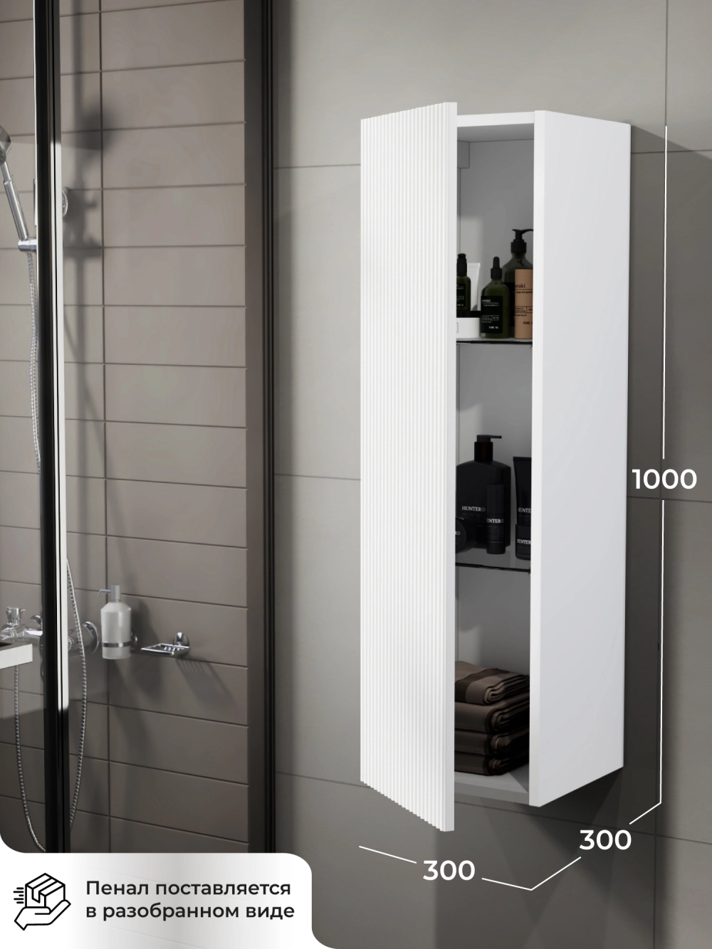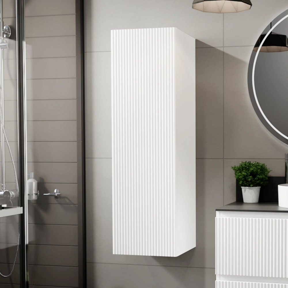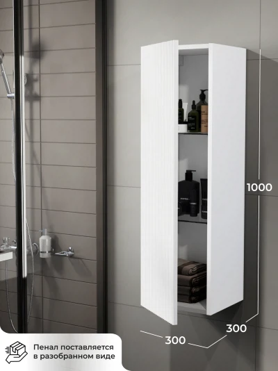 Пенал в ванную из коллекции Kate 30 - воплотил в себе тренд на фактурные фасады. Идеальный "рубчик" - простое и стильное дизайнерское решение для декорирования фасадов, этот пенал бесспорно станет украшением современной ванной комнаты. Благодаря его компактным размерам 300х300х1000 и настенному крепежу он занимает немного места и надежно закрепляется. Пенал в ванную изготовлен из МДФ и покрыт ПВХ пленкой, что обеспечивает ему привлекательный внешний вид, а также износостойкость и долговечность. Качественная фурнитура с доводчиками и удобные фрезерованные ручки обеспечивают легкое открывание и плавное закрывание дверок. Внутри у шкафа полки, где можно рационально распределить и разместить все необходимые вещи для ванной комнаты. Полки пенала легко переставить, возможно регулировать расстояние их между собой. Для точного выбора пенала в ванную комнату рекомендуем обратиться к схеме замеров, которая находится на фото в карточке товара. Размеры изделия могут отличаться +/-1 см в связи со спецификой производства. Дополнить комплект можно тумбой с раковиной и зеркалом из коллекции Kate. Изделия коллекции качественные, функциональные и органически впишутся в популярные и современные интерьерные решения для ванных комнат. Шкаф пенал для ванной комнаты доставляется в предварительно собранном виде, надежно упакован.
