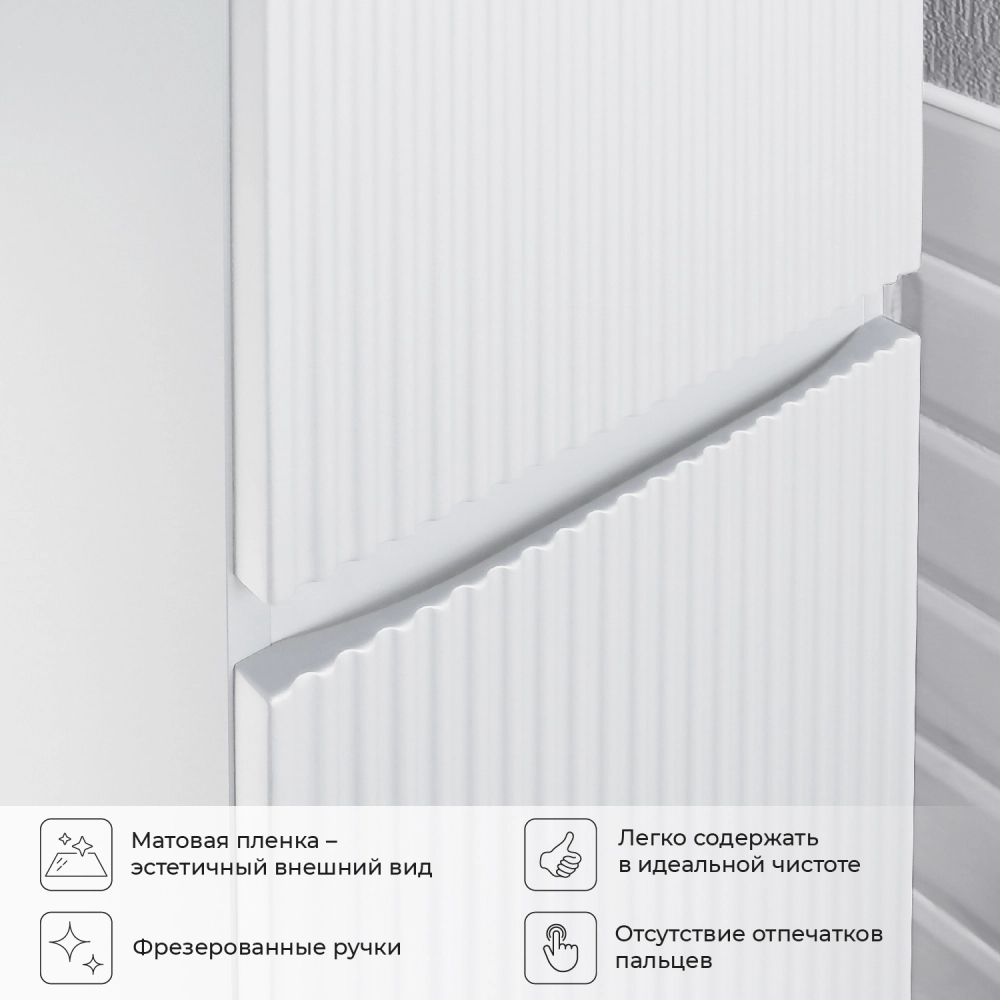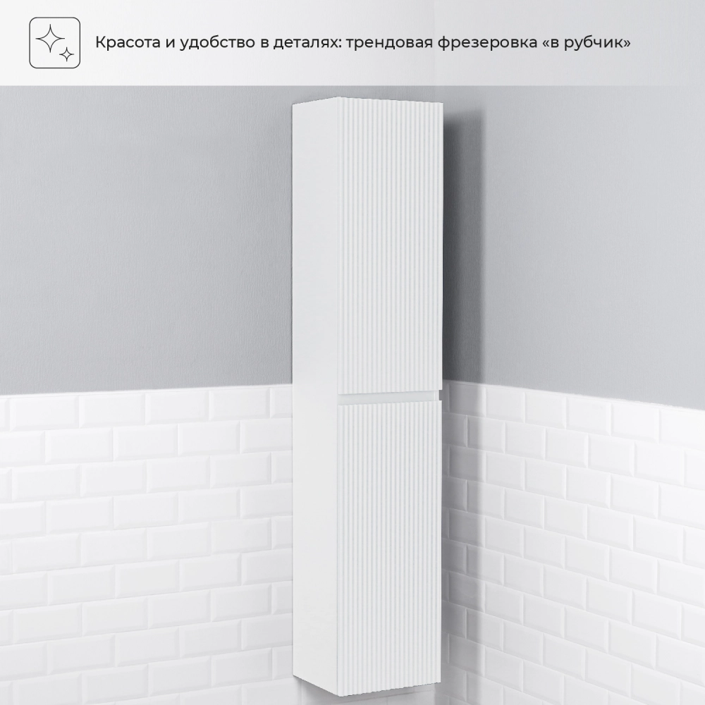 Пенал в ванную из коллекции Kate 35 - воплотил в себе тренд на фактурные фасады. Идеальный "рубчик" - простое и стильное дизайнерское решение для декорирования фасадов,этот пенал бесспорно станет украшением современной ванной комнаты. Благодаря его компактным размерам 350х300х1750 и настенному крепежу он занимает немного места и надежно закрепляется. Пенал в ванную изготовлен из МДФ и покрыт ПВХ пленкой, что обеспечивает ему привлекательный внешний вид, а также износостойкость и долговечность. Качественная фурнитура с доводчиками и удобные фрезерованные ручки обеспечивают легкое открывание и плавное закрывание дверок. Внутри у шкафа полки, где можно рационально распределить и разместить все необходимые вещи для ванной комнаты. Полки пенала легко переставить, возможно регулировать расстояние их между собой. Для точного выбора пенала в ванную комнату рекомендуем обратиться к схеме замеров, которая находится на фото в карточке товара. Размеры изделия могут отличаться +/-1 см в связи со спецификой производства. Дополнить комплект можно тумбой с раковиной и зеркалом из коллекции Kate. Изделия коллекции качественные, функциональные и органически впишутся в популярные и современные интерьерные решения для ванных комнат. Шкаф пенал для ванной комнаты доставляется в предварительно собранном виде, надежно упакован.