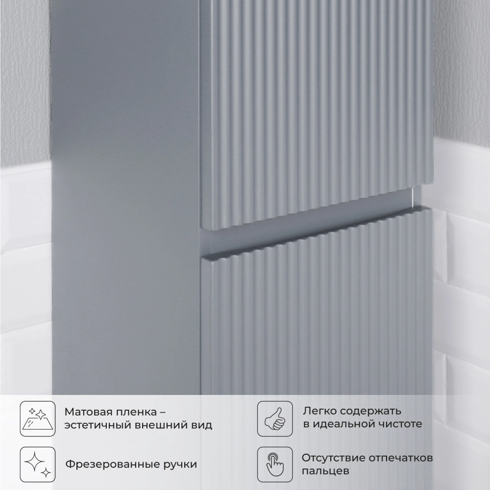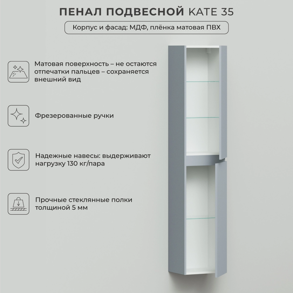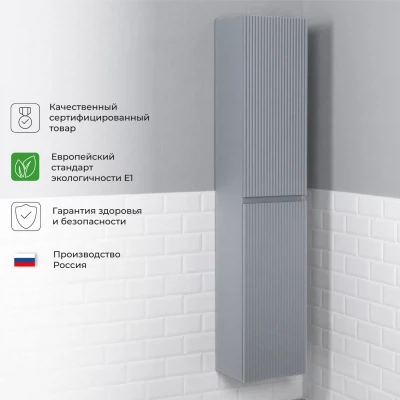 Пенал в ванную из коллекции Kate 35 - воплотил в себе тренд на фактурные фасады. Идеальный "рубчик" - простое и стильное дизайнерское решение для декорирования фасадов - этот пенал бесспорно станет украшением современной ванной комнаты. Благодаря его компактным размерам 350х300х1750 и настенному крепежу он занимает немного места и надежно закрепляется. Пенал в ванную изготовлен из МДФ и покрыт ПВХ пленкой, что обеспечивает ему привлекательный внешний вид, а также износостойкость и долговечность. Качественная фурнитура с доводчиками и удобные фрезерованные ручки обеспечивают легкое открывание и плавное закрывание дверок. Внутри у шкафа полки, где можно рационально распределить и разместить все необходимые вещи для ванной комнаты. Полки пенала легко переставить, возможно регулировать расстояние их между собой. Для точного выбора пенала в ванную комнату рекомендуем обратиться к схеме замеров, которая находится на фото в карточке товара. Размеры изделия могут отличаться +/-1 см в связи со спецификой производства. Дополнить комплект можно тумбой с раковиной и зеркалом из коллекции Kate. Изделия коллекции качественные, функциональные и органически впишутся в популярные и современные интерьерные решения для ванных комнат. Шкаф пенал для ванной комнаты доставляется в предварительно собранном виде, надежно упакован.