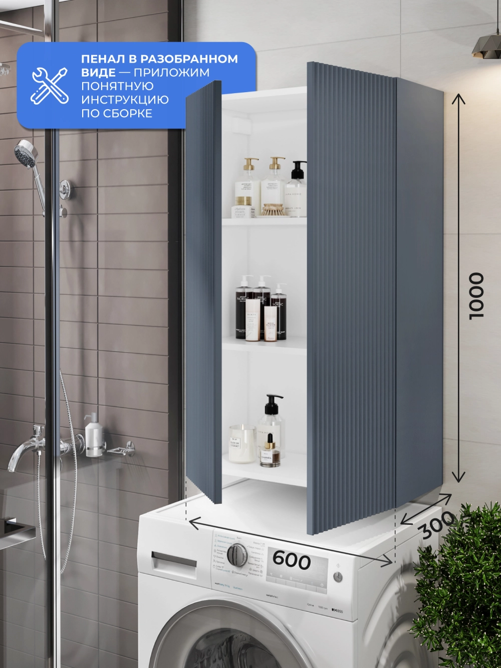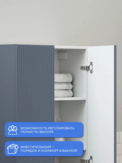 Пенал в ванную из коллекции Kate 60 - воплотил в себе тренд на фактурные фасады. Идеальный "рубчик" - простое и стильное дизайнерское решение для декорирования фасадов - этот пенал бесспорно станет украшением современной ванной комнаты. Благодаря его компактным размерам 600х300х1000 и настенному крепежу он занимает немного места и надежно закрепляется. Пенал в ванную изготовлен из МДФ и покрыт ПВХ пленкой, что обеспечивает ему привлекательный внешний вид, а также износостойкость и долговечность. Качественная фурнитура с доводчиками обеспечивает легкое открывание и плавное закрывание дверок. Внутри у шкафа полки, где можно рационально распределить и разместить все необходимые вещи для ванной комнаты. Полки пенала легко переставить, возможно регулировать расстояние их между собой. Для точного выбора пенала в ванную комнату рекомендуем обратиться к схеме замеров, которая находится на фото в карточке товара. Размеры изделия могут отличаться +/-1 см в связи со спецификой производства. Дополнить комплект можно тумбой с раковиной и зеркалом из коллекции Kate. Изделия коллекции качественные, функциональные и органически впишутся в популярные и современные интерьерные решения для ванных комнат.