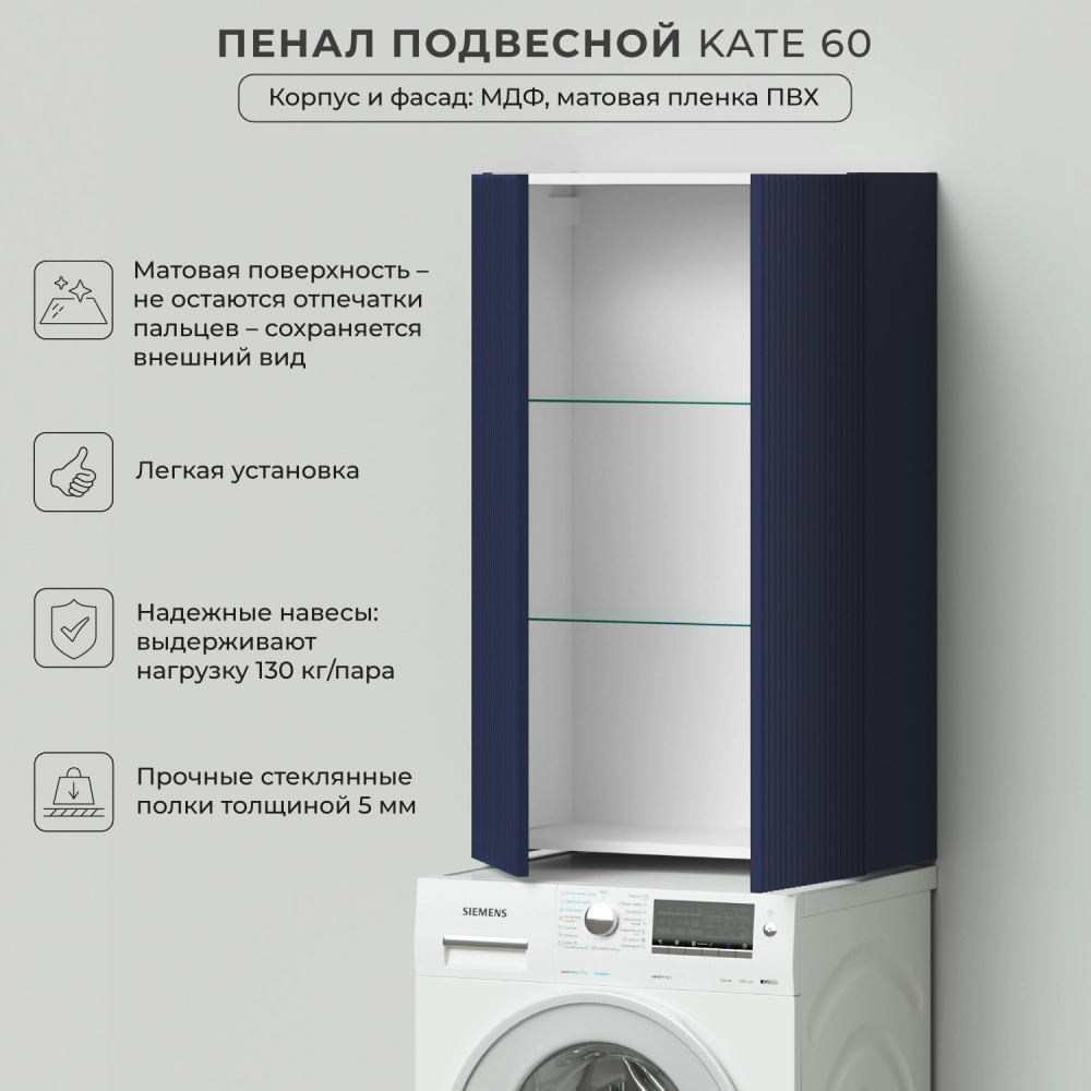 Пенал в ванную из коллекции Kate 60 - воплотил в себе тренд на фактурные фасады. Идеальный "рубчик" - простое и стильное дизайнерское решение для декорирования фасадов - этот пенал бесспорно станет украшением современной ванной комнаты. Благодаря его компактным размерам 600х300х1000 и настенному крепежу он занимает немного места и надежно закрепляется. Пенал в ванную изготовлен из МДФ и покрыт ПВХ пленкой, что обеспечивает ему привлекательный внешний вид, а также износостойкость и долговечность. Качественная фурнитура с доводчиками обеспечивает легкое открывание и плавное закрывание дверок. Внутри у шкафа полки, где можно рационально распределить и разместить все необходимые вещи для ванной комнаты. Полки пенала легко переставить, возможно регулировать расстояние их между собой. Для точного выбора пенала в ванную комнату рекомендуем обратиться к схеме замеров, которая находится на фото в карточке товара. Размеры изделия могут отличаться +/-1 см в связи со спецификой производства. Дополнить комплект можно тумбой с раковиной и зеркалом из коллекции Kate. Изделия коллекции качественные, функциональные и органически впишутся в популярные и современные интерьерные решения для ванных комнат. Шкаф пенал для ванной комнаты доставляется в предварительно собранном виде, надежно упакован.