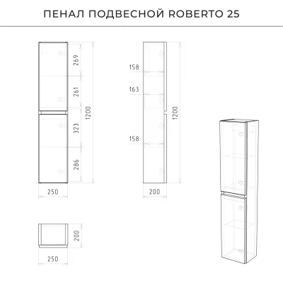 Пенал в ванную из коллекции Roberto 25 в стиле модерн с удобной организацией внутреннего пространства шкафов. Шкаф-пенал поможет создать комфортные условия в ванной комнате. Благодаря его компактным размерам 250х200х1200 и настенному крепежу он занимает немного места и надежно закрепляется. Дверь шкафа универсальна, возможно установить на любую сторону, как правое, так и левое открывание. Пенал в ванную изготовлен из МДФ и покрыт ПВХ пленкой, что обеспечивает ему привлекательный внешний вид, а также износостойкость и долговечность. Качественная фурнитура с доводчиками обеспечивает легкое открывание и плавное закрывание дверок. Внутри пенала для ванной полки, где можно рационально распределить и разместить все необходимые вещи для ванной комнаты. Полки пенала легко переставить, возможно регулировать расстояние их между собой. Для точного выбора пенала в ванную комнату рекомендуем обратиться к схеме замеров, которая находится на фото в карточке товара. Размеры изделия могут отличаться +/-1 см в связи со спецификой производства. Дополнить комплект можно тумбой с раковиной и зеркалом из коллекции Roberto. Изделия коллекции качественные, функциональные и органически впишутся в популярные и современные интерьерные решения для ванных комнат. Шкаф пенал для ванной комнаты доставляется в предварительно собранном виде, надежно упакован.