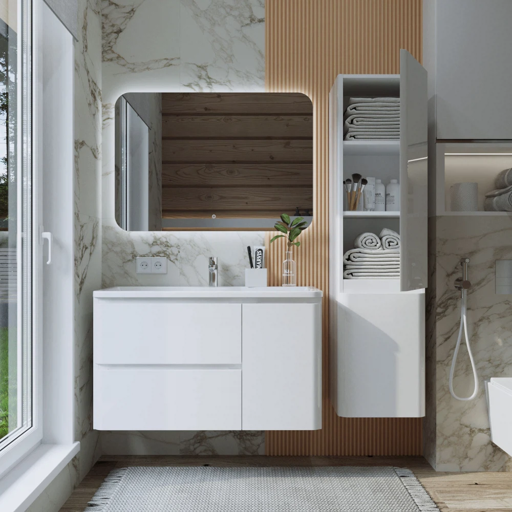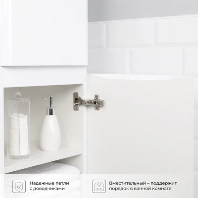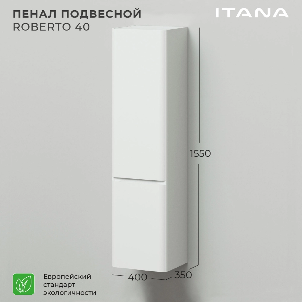 Остановилась на выборе серии Итана Роберто и очень довольна. Приобрели пенал и тумбу из этой серии. Пенал небольшой по размеру, но достаточно вместительный, бытовая химия, предметы личной гигиены и косметика уместились без проблем. Простой и изящный дизайн, ничего лишнего. Пенал подвесной, удобно протирать под ним и есть место чтобы что-то под него поставить. Дверцы плавно закрываются за счёт доводчиков. Однозначно рекомендую к покупке.