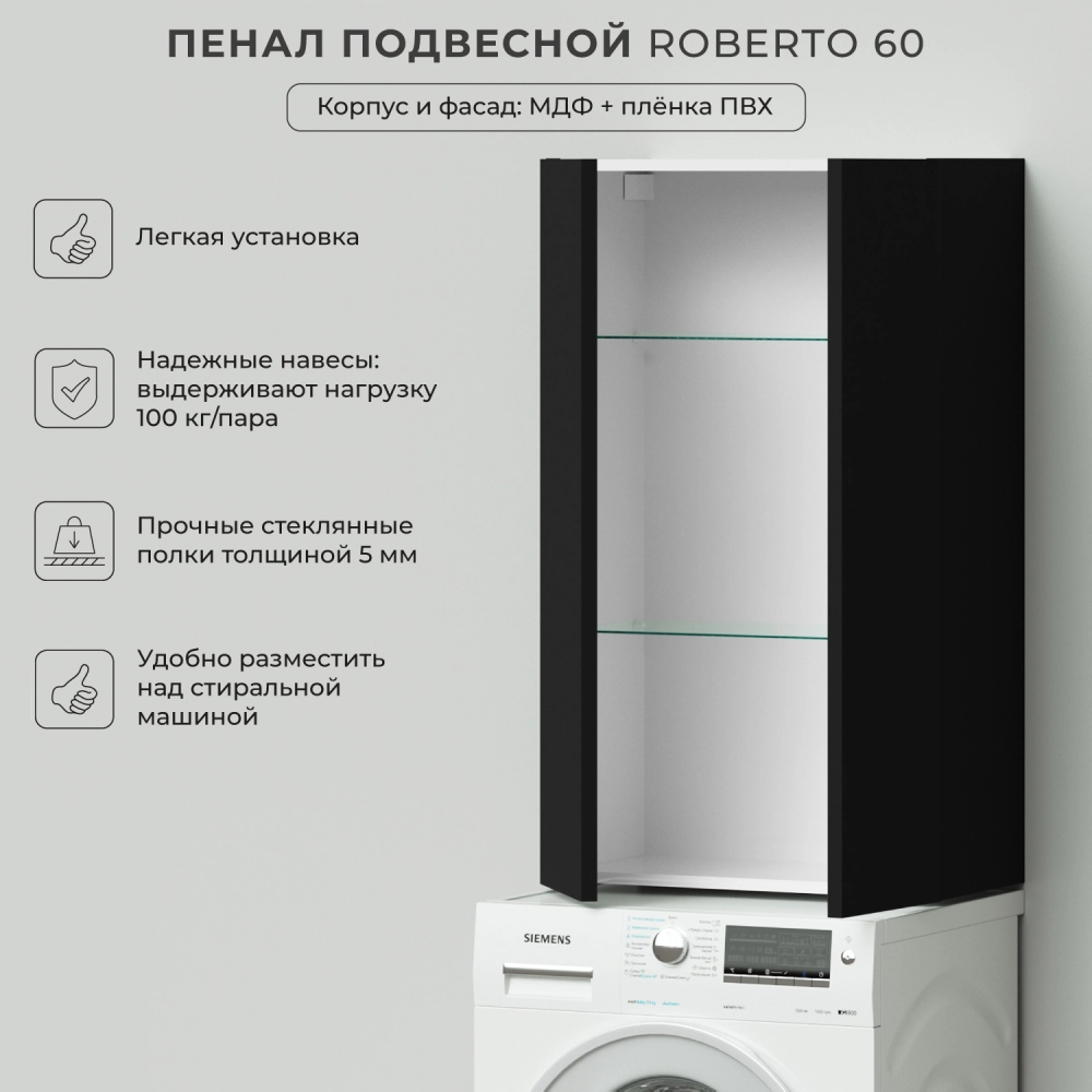 Пенал подвесной Итана Roberto 60 Черный софт