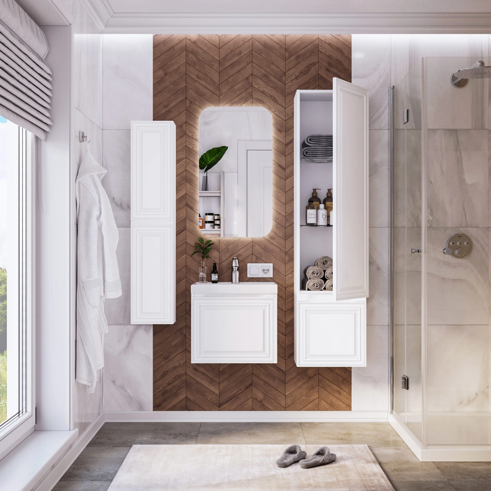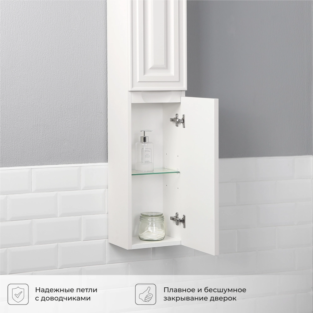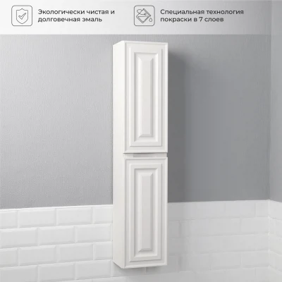Пенал в ванную из коллекции Verona 25 - это универсальное решение для современной ванной. Шкаф-пенал поможет создать комфортные условия в ванной комнате. Благодаря его компактным размерам 250х200х1200 и настенному крепежу он занимает немного места и надежно закрепляется. Пенал в ванную изготовлен из МДФ, что обеспечивает ему привлекательный внешний вид, а также износостойкость и долговечность. Качественная фурнитура с доводчиками и фрезерованные ручки обеспечивают легкое открывание и плавное закрывание дверок. Внутри пенала для ванной полки, где можно рационально распределить и разместить все необходимые вещи для ванной комнаты. Полки пенала легко переставить, возможно регулировать расстояние их между собой. Для точного выбора пенала в ванную комнату рекомендуем обратиться к схеме замеров, которая находится на фото в карточке товара. Размеры изделия могут отличаться +/-1 см в связи со спецификой производства. Дополнить комплект можно тумбой с раковиной и зеркалом из коллекции Verona. Изделия коллекции качественные, функциональные и органически впишутся в популярные и современные интерьерные решения для ванных комнат. Шкаф пенал для ванной комнаты доставляется в предварительно собранном виде, надежно упакован.