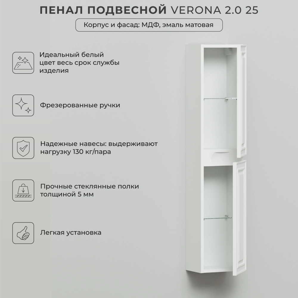 Пенал подвесной Итана Verona 25 универсальный Эмаль Белый матовый