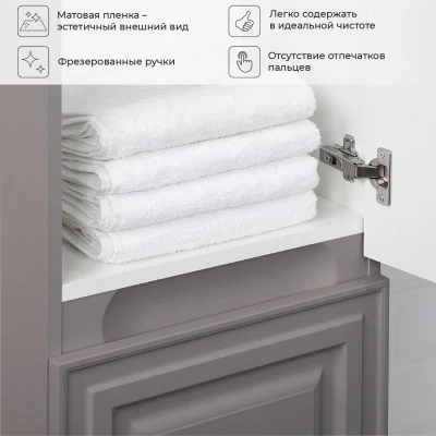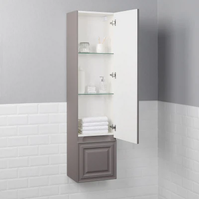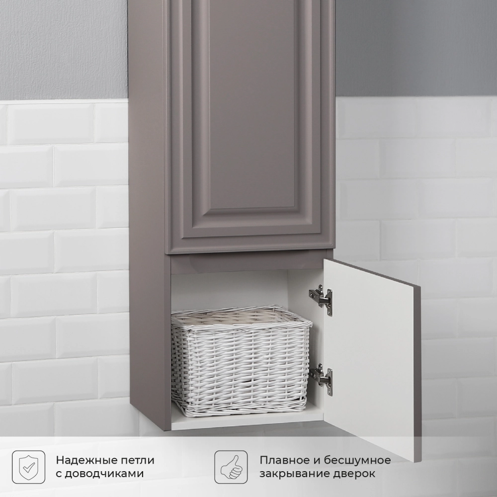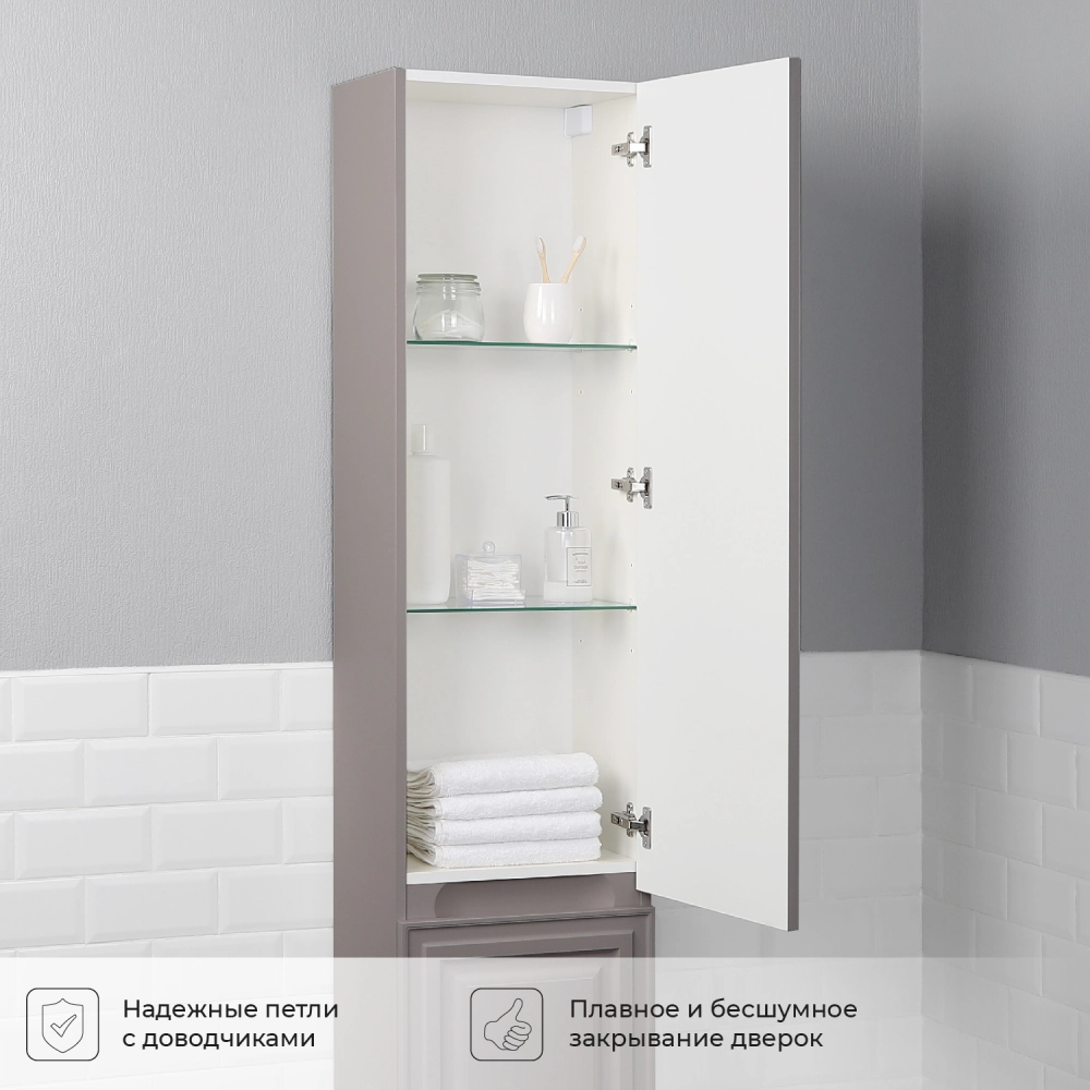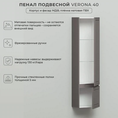 Пенал в ванную из коллекции Verona 40 - это универсальное решение для современной ванной. Шкаф-пенал поможет создать комфортные условия в ванной комнате. Благодаря его компактным размерам 400х300х1600 и настенному крепежу он занимает немного места и надежно закрепляется. Пенал в ванную изготовлен из МДФ и покрыт ПВХ пленкой, что обеспечивает ему привлекательный внешний вид, а также износостойкость и долговечность. Качественная фурнитура с доводчиками и фрезерованные ручки обеспечивают легкое открывание и плавное закрывание дверок. Внутри пенала для ванной полки, где можно рационально распределить и разместить все необходимые вещи для ванной комнаты. Полки пенала легко переставить, возможно регулировать расстояние их между собой. Для точного выбора пенала в ванную комнату рекомендуем обратиться к схеме замеров, которая находится на фото в карточке товара. Размеры изделия могут отличаться +/-1 см в связи со спецификой производства. Дополнить комплект можно тумбой с раковиной и зеркалом из коллекции Verona. Изделия коллекции качественные, функциональные и органически впишутся в популярные и современные интерьерные решения для ванных комнат. Шкаф пенал для ванной комнаты доставляется в предварительно собранном виде, надежно упакован.