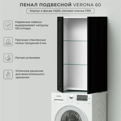 Пенал в ванную из коллекции Verona 60 - это универсальное решение для современной ванной. Шкаф-пенал поможет создать комфортные условия в ванной комнате. Благодаря его компактным размерам 600х300х1000 и настенному крепежу он занимает немного места и надежно закрепляется. Пенал в ванную изготовлен из МДФ и покрыт ПВХ пленкой, что обеспечивает ему привлекательный внешний вид, а также износостойкость и долговечность. Качественная фурнитура с доводчиками и фрезерованные ручки обеспечивают легкое открывание и плавное закрывание дверок. Внутри пенала для ванной полки, где можно рационально распределить и разместить все необходимые вещи для ванной комнаты. Полки пенала легко переставить, возможно регулировать расстояние их между собой. Для точного выбора пенала в ванную комнату рекомендуем обратиться к схеме замеров, которая находится на фото в карточке товара. Размеры изделия могут отличаться +/-1 см в связи со спецификой производства. Дополнить комплект можно тумбой с раковиной и зеркалом из коллекции Verona. Изделия коллекции качественные, функциональные и органически впишутся в популярные и современные интерьерные решения для ванных комнат. Шкаф пенал для ванной комнаты доставляется в предварительно собранном виде, надежно упакован.