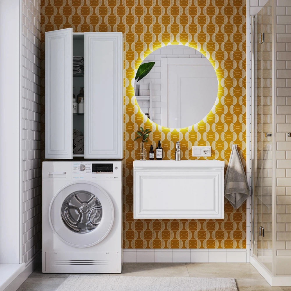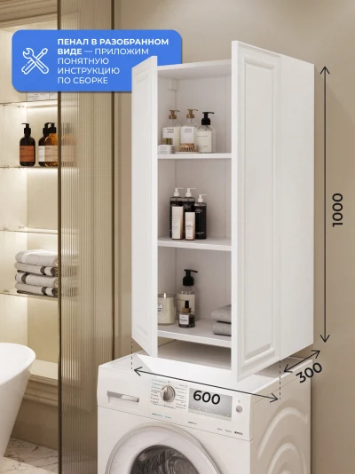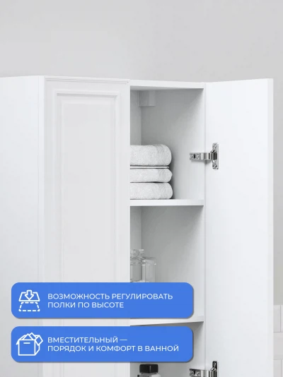 Пенал в ванную из коллекции Verona 60 - это универсальное решение для современной ванной. Шкаф-пенал поможет создать комфортные условия в ванной комнате. Благодаря его компактным размерам 600х300х1000 и настенному крепежу он занимает немного места и надежно закрепляется. Пенал в ванную изготовлен из МДФ и покрыт ПВХ пленкой, что обеспечивает ему привлекательный внешний вид, а также износостойкость и долговечность. Качественная фурнитура с доводчиками и фрезерованные ручки обеспечивают легкое открывание и плавное закрывание дверок. Внутри пенала для ванной полки, где можно рационально распределить и разместить все необходимые вещи для ванной комнаты. Полки пенала легко переставить, возможно регулировать расстояние их между собой. Для точного выбора пенала в ванную комнату рекомендуем обратиться к схеме замеров, которая находится на фото в карточке товара. Размеры изделия могут отличаться +/-1 см в связи со спецификой производства. Дополнить комплект можно тумбой с раковиной и зеркалом из коллекции Verona. Изделия коллекции качественные, функциональные и органически впишутся в популярные и современные интерьерные решения для ванных комнат.