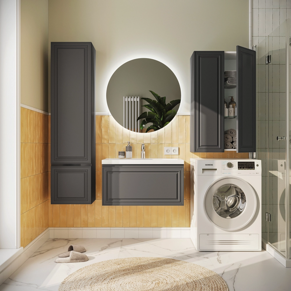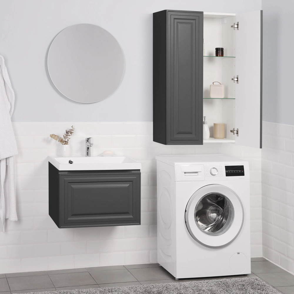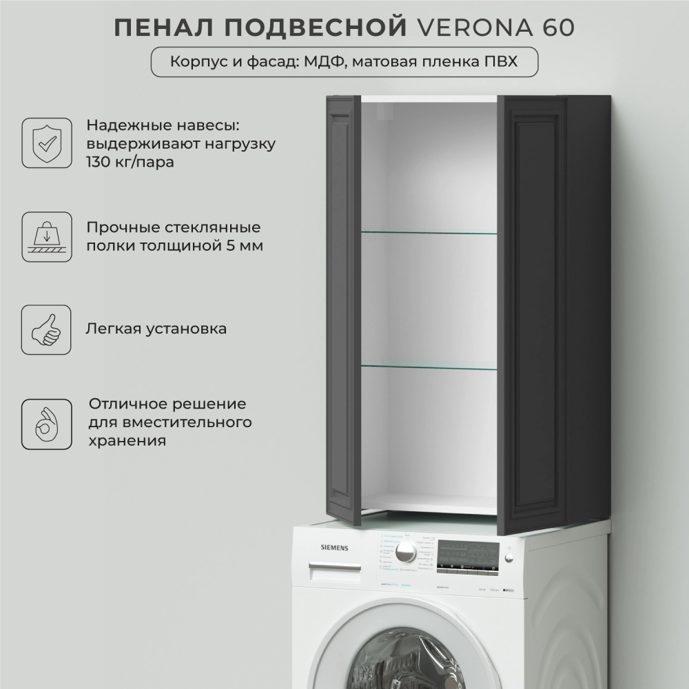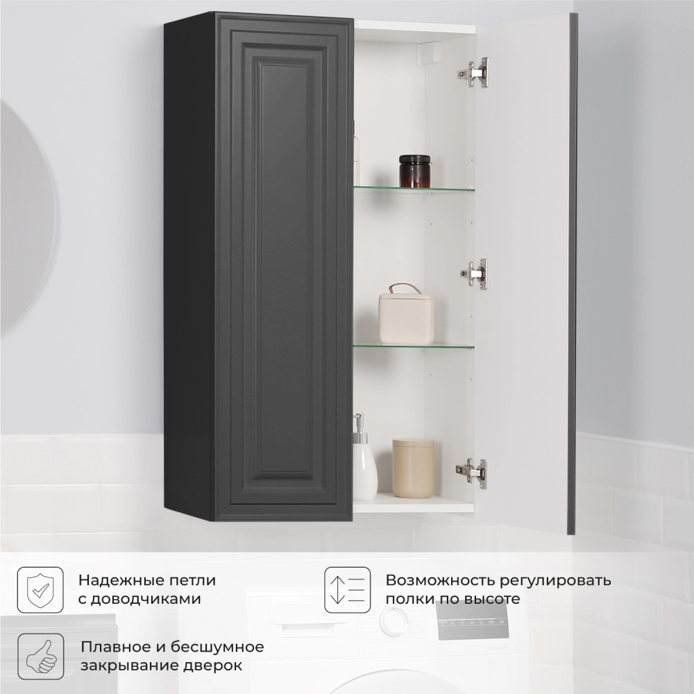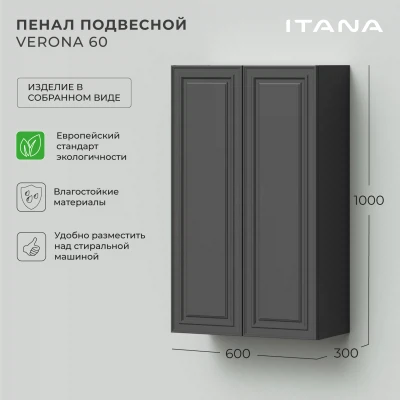Пенал в ванную из коллекции Verona 60 - это универсальное решение для современной ванной. Шкаф-пенал поможет создать комфортные условия в ванной комнате. Благодаря его компактным размерам 600х300х1000 и настенному крепежу он занимает немного места и надежно закрепляется. Пенал в ванную изготовлен из МДФ и покрыт ПВХ пленкой, что обеспечивает ему привлекательный внешний вид, а также износостойкость и долговечность. Качественная фурнитура с доводчиками и фрезерованные ручки обеспечивают легкое открывание и плавное закрывание дверок. Внутри пенала для ванной полки, где можно рационально распределить и разместить все необходимые вещи для ванной комнаты. Полки пенала легко переставить, возможно регулировать расстояние их между собой. Для точного выбора пенала в ванную комнату рекомендуем обратиться к схеме замеров, которая находится на фото в карточке товара. Размеры изделия могут отличаться +/-1 см в связи со спецификой производства. Дополнить комплект можно тумбой с раковиной и зеркалом из коллекции Verona. Изделия коллекции качественные, функциональные и органически впишутся в популярные и современные интерьерные решения для ванных комнат. Шкаф пенал для ванной комнаты доставляется в предварительно собранном виде, надежно упакован.