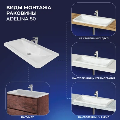 Раковина мебельная Итана Adelina 80 Белый глянец
