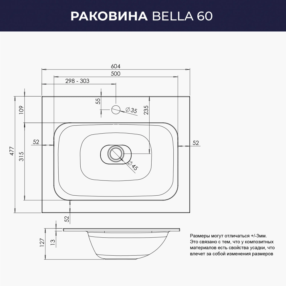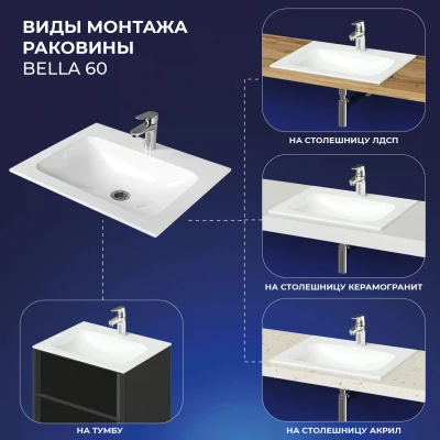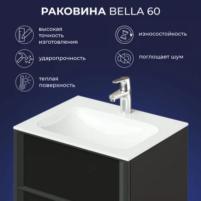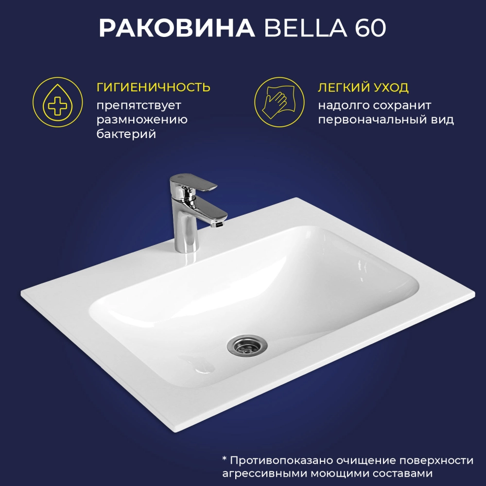 Раковина для ванной Итана Bella 60 изготовлена из искусственного камня. Искусственный камень - это современное и практичное решение для ванной комнаты. Верхний слой Гелькоута образует декоративное защитное покрытие, которое легко мыть. Не содержит вредных для здоровья человека веществ, экологически безопасный. Шумопоглощающая поверхность. Имеет одно готовое отверстие под смеситель. Раковина может быть встроена на мебель, в столешницу и на подстолье. Раковина для ванной доставляется в надежной упаковке.