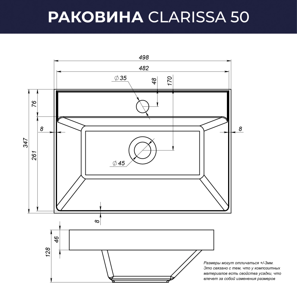 Раковина мебельная Итана Clarissa 50 Белый глянец