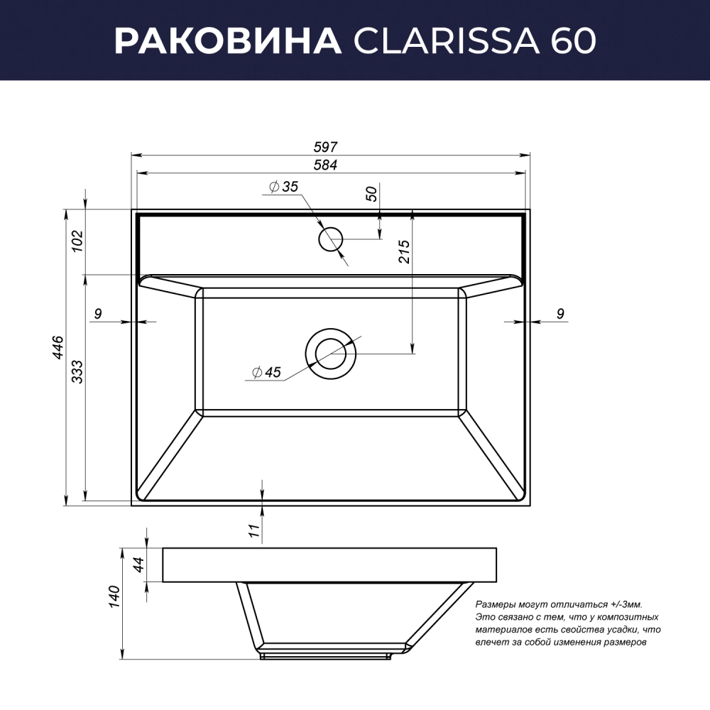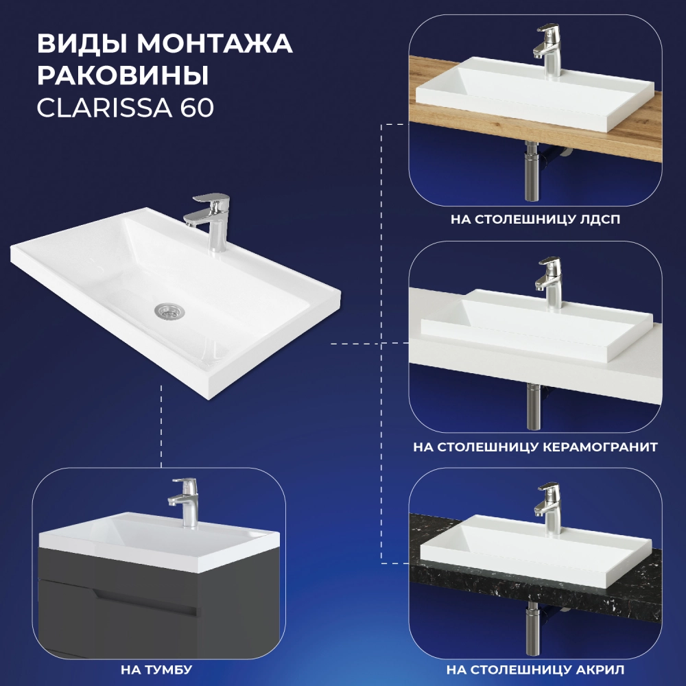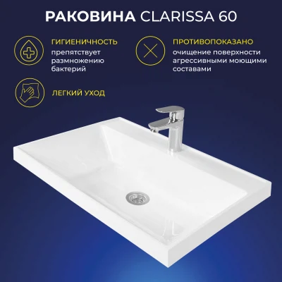 Раковина мебельная Итана Clarissa 60 Белый глянец