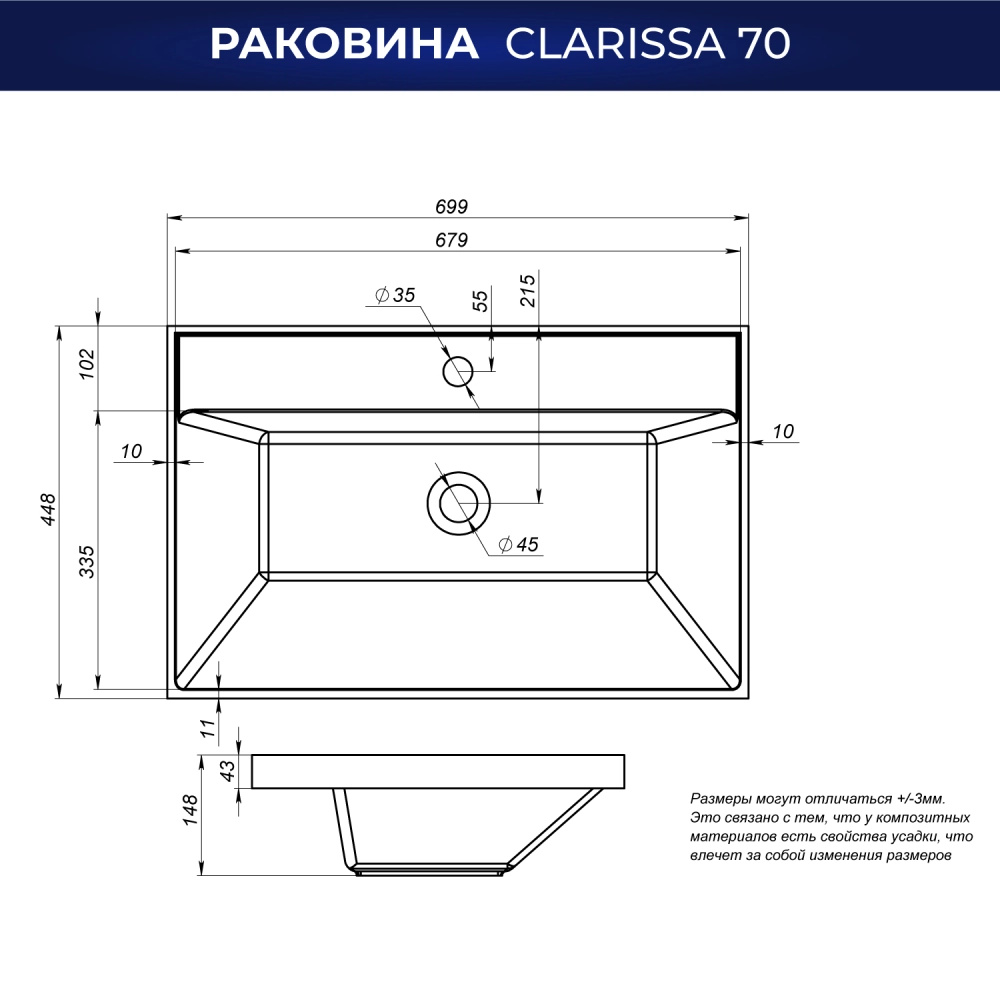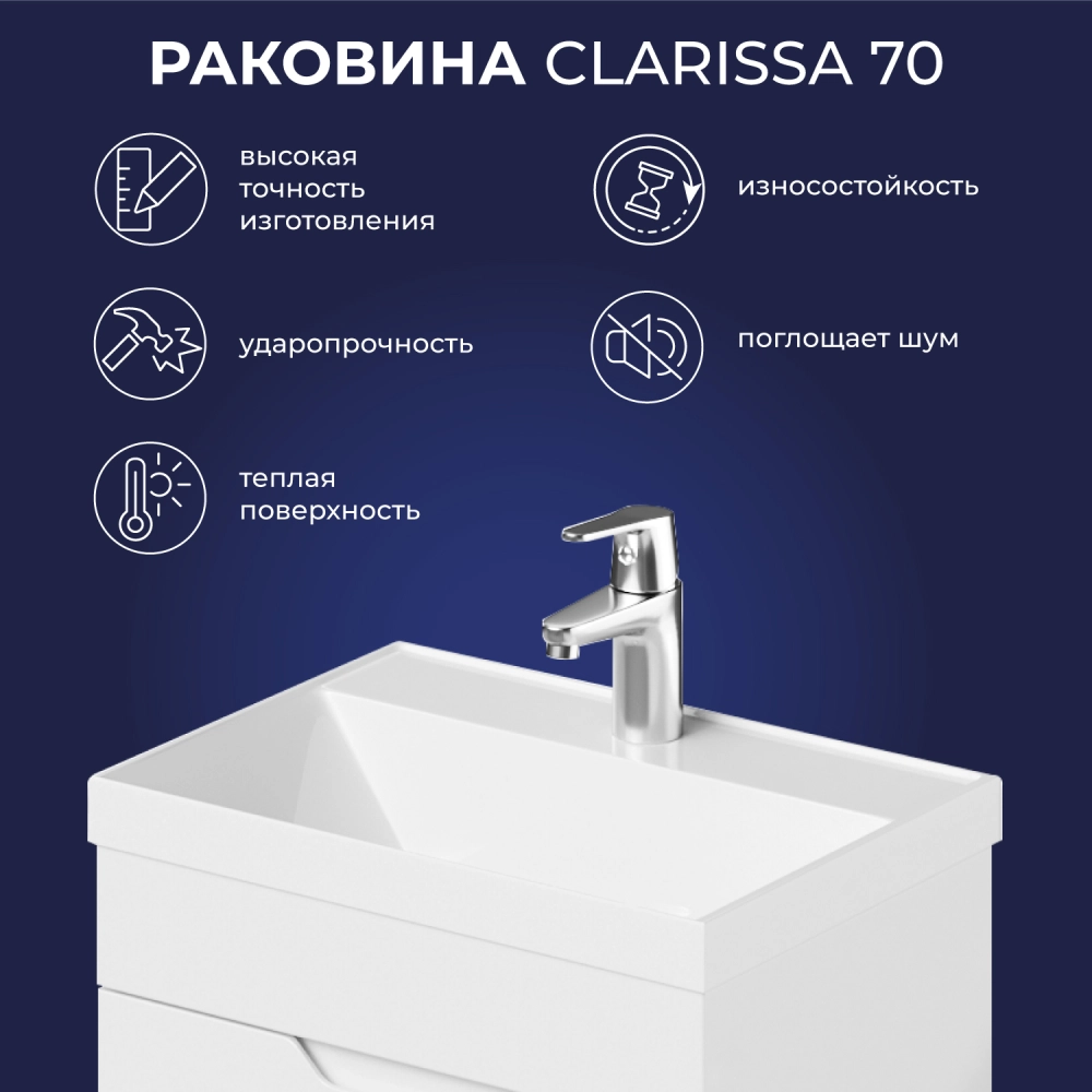 Раковина мебельная Итана Clarissa 70 Белый глянец