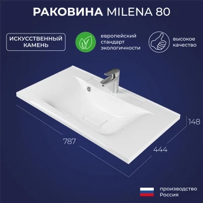 Раковина для ванной Итана Milena 80 изготовлена из искусственного мрамора. Верхний слой Гелькоута образует декоративно защитное покрытие. Не содержит вредных для здоровья человека веществ, экологически безопасный. Шумопоглощающая поверхность. Раковина может быть встроена на мебель, в столешницу и на подстолье. Совместима с тумбой под раковину Итана Kate 80. Раковина для ванной доставляется в надежной упаковке.