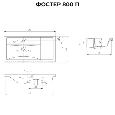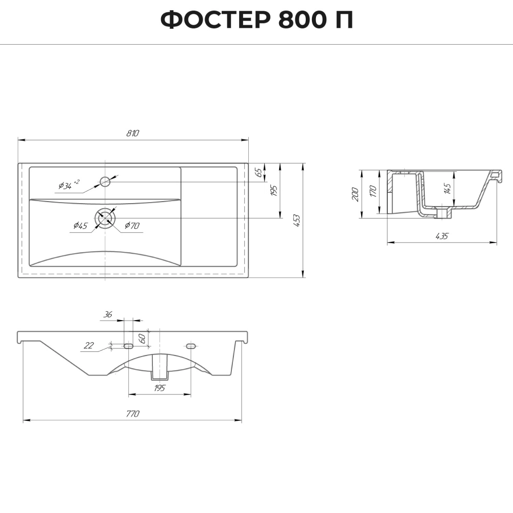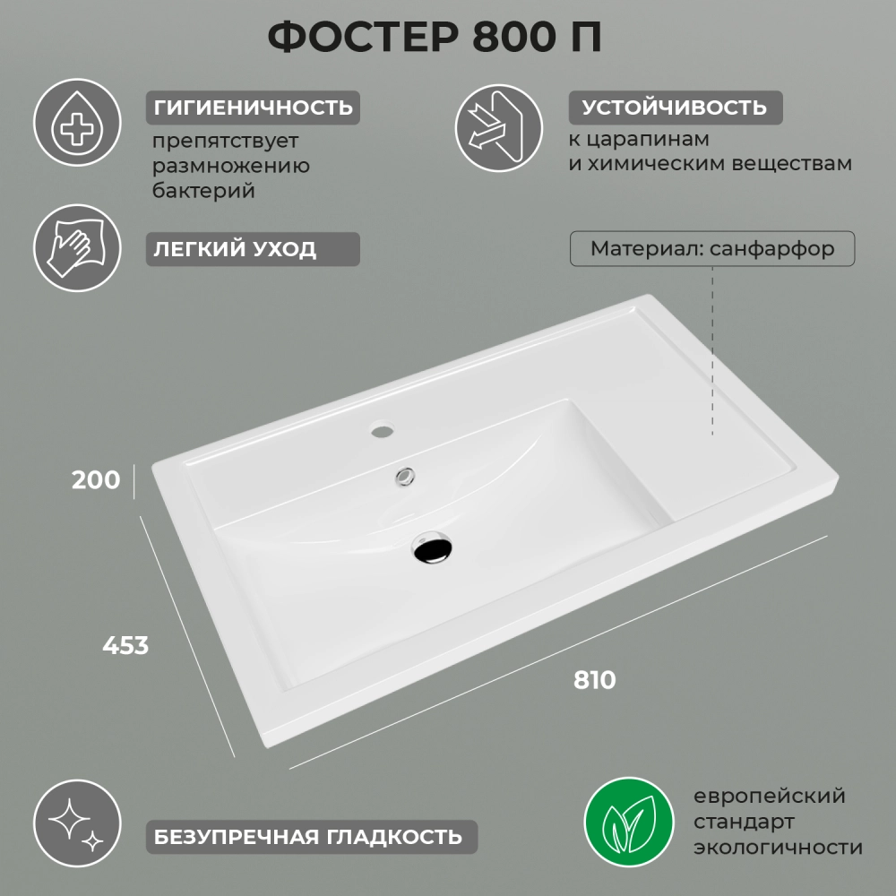 Раковина мебельная Kirovit "Фостер 800 П" Белый глянец
