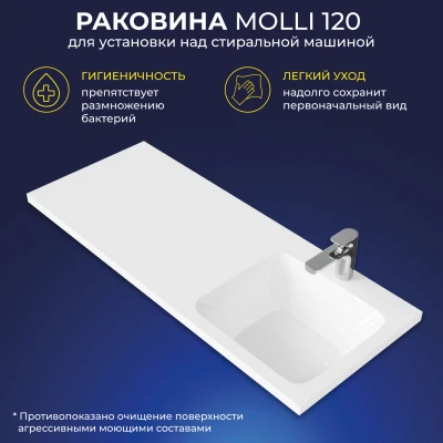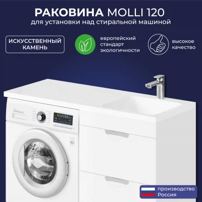 Накладная раковина в ванную Итана Molli - идеальное решение для вашей ванной комнаты! Раковина предназначена для установки над стиральной машиной. Изготовлена из высококачественных и долговечных материалов. Искусственный камень обеспечивает прочность и устойчивость к повреждениям. Благодаря крылу раковину легко и удобно использовать, а также она экономит пространство в ванной комнате. Накладная раковина в ванную доставляется в надежной упаковке.