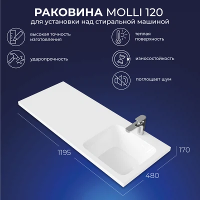 Раковина мебельная с крылом Итана Molli 120 правая чаша