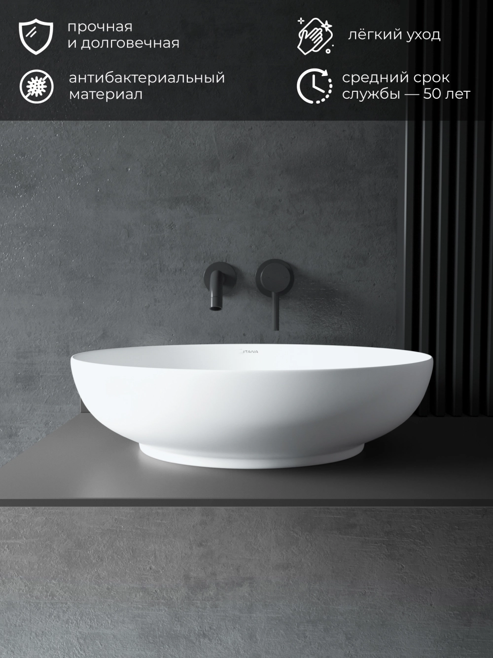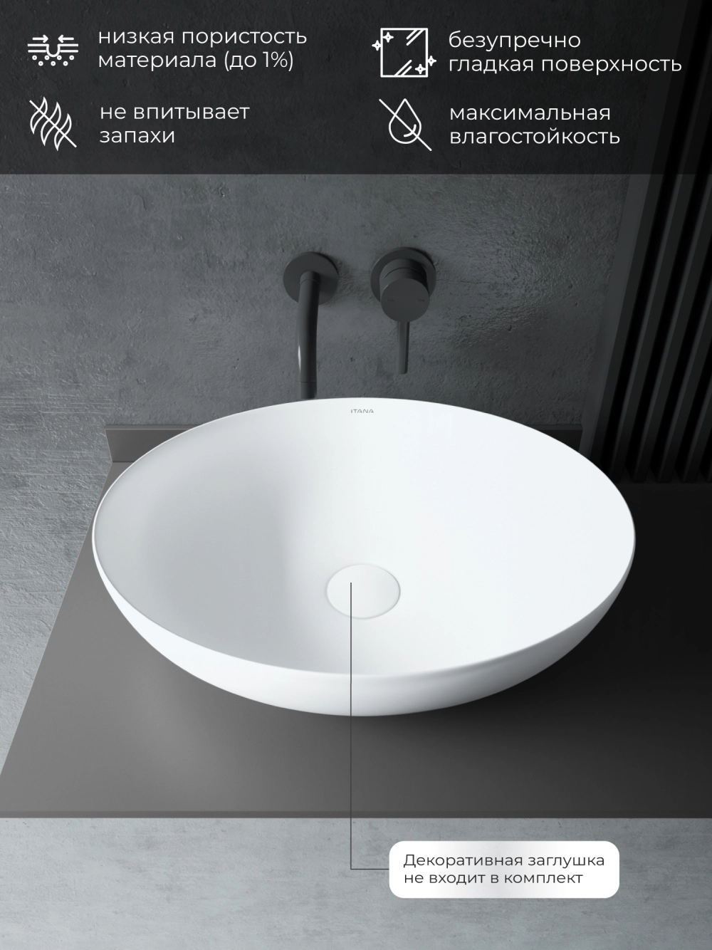 Раковина накладная для ванной ITANA AURA Белый глянец