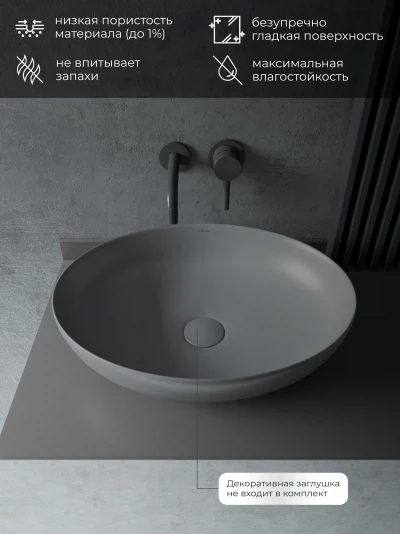 Раковина накладная для ванной ITANA AURA Серый матовый