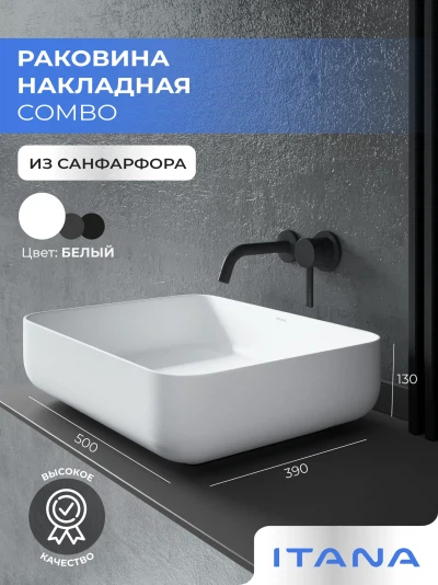 Раковина накладная для ванной ITANA COMBO Белый глянец