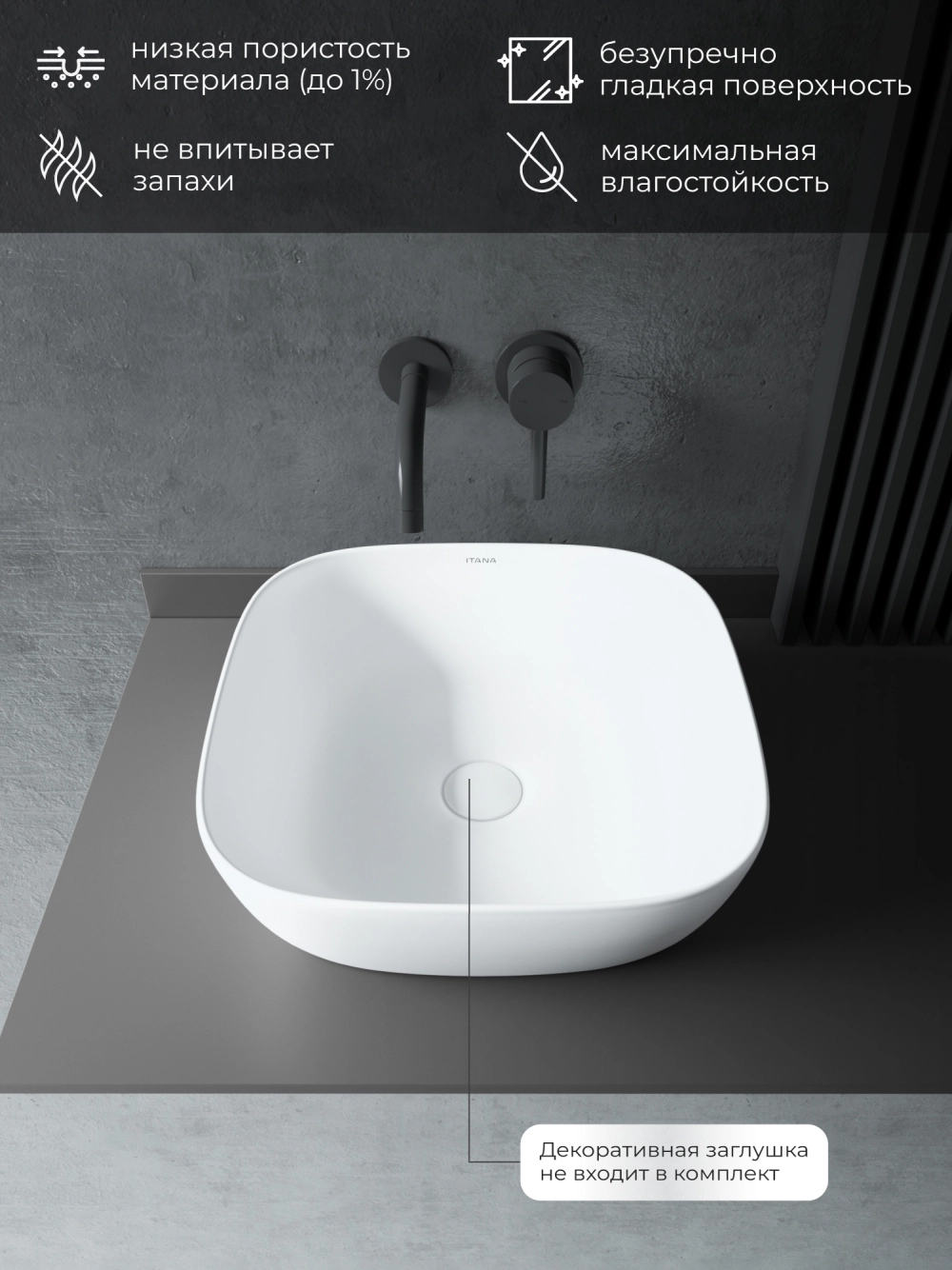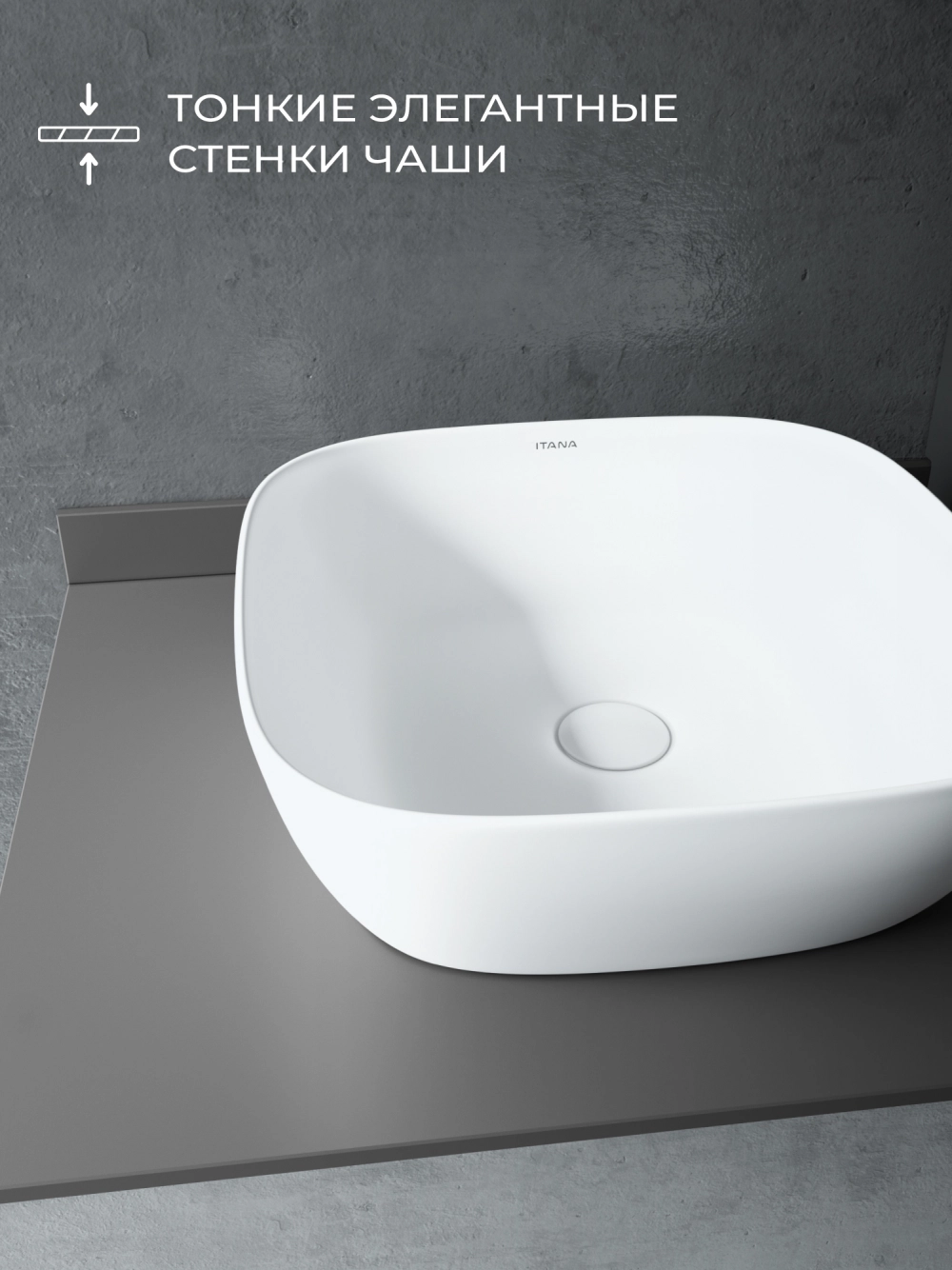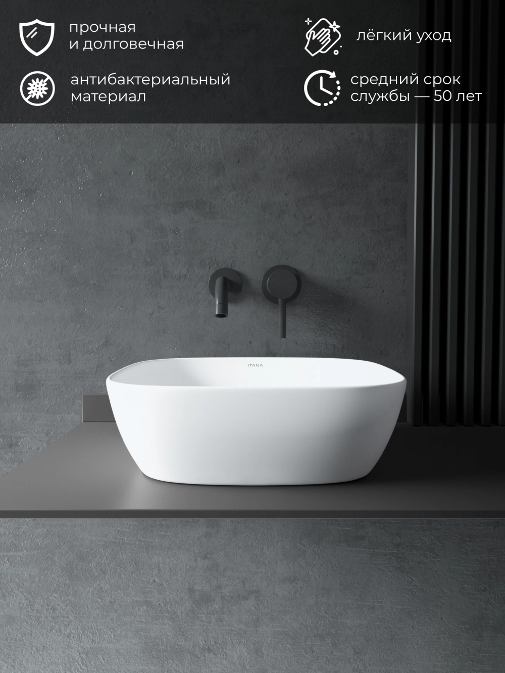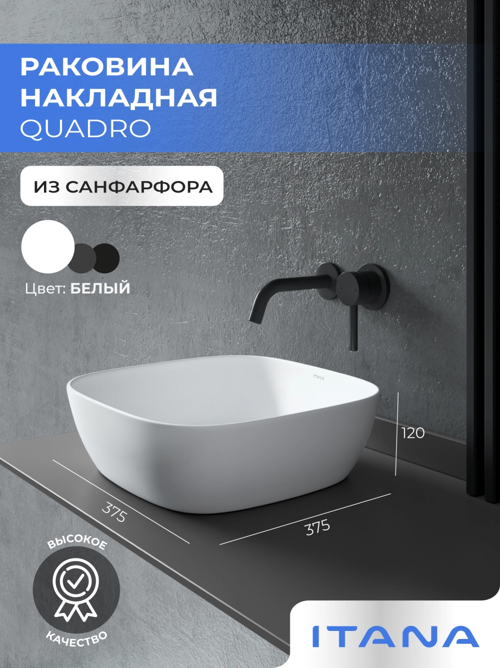 Раковина накладная для ванной ITANA QUADRO Белый глянец