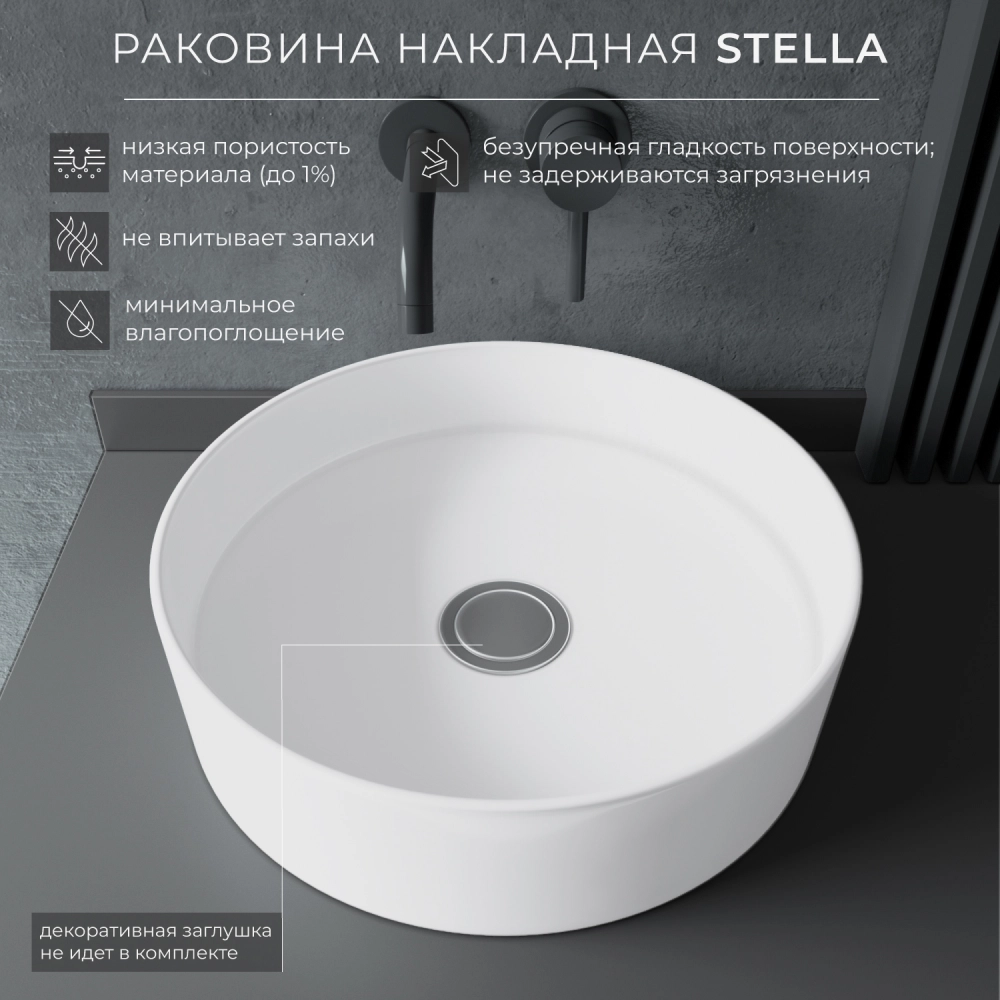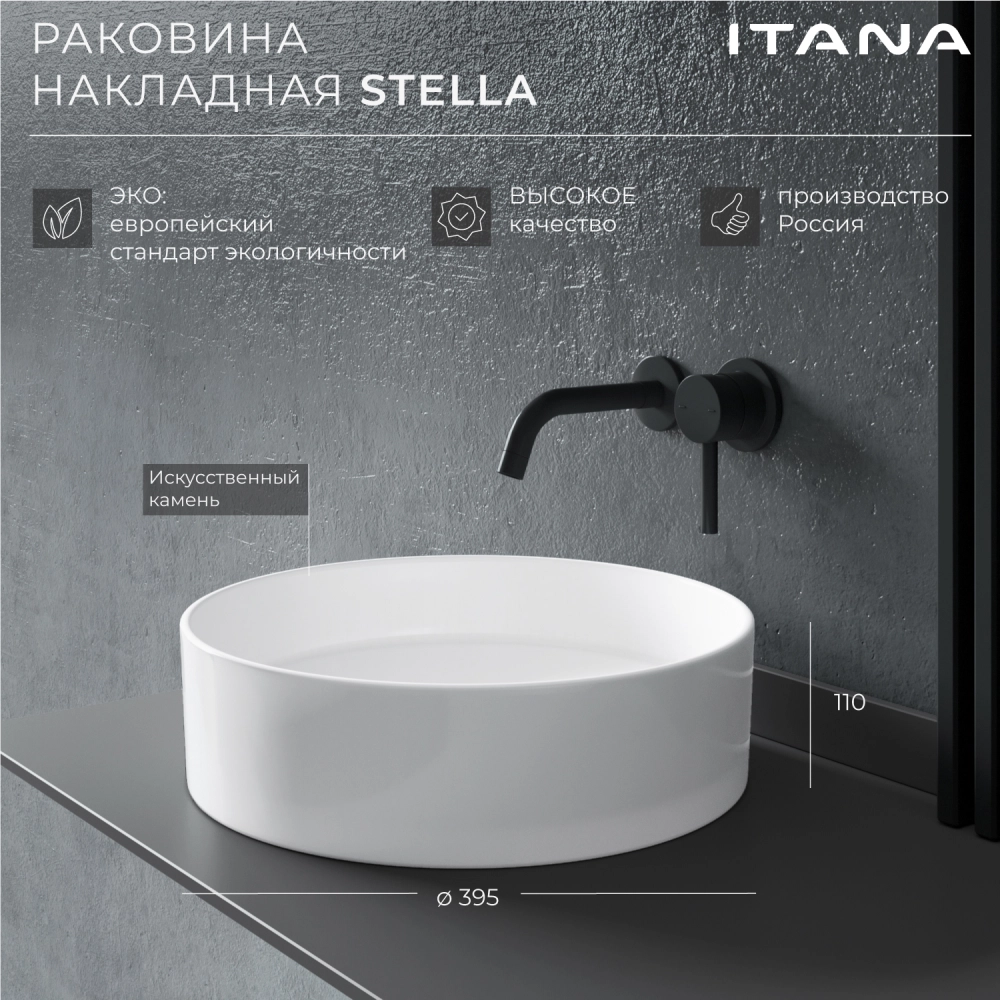 Раковина накладная для ванной ITANA Stella - это идеальное решение для тех, кто ценит стиль и функциональность. Этот современный элемент интерьера с размерами 395х395х110 мм прекрасно впишется в любой дизайн ванной комнаты. Благодаря своей универсальной белой расцветке, раковина легко комбинируется с другими элементами сантехники и мебели. Установка накладной раковины происходит просто и быстро, что позволяет сэкономить время и силы во время ремонта или обновления интерьера. Благодаря своей надёжной конструкции, она устойчива к механическим повреждениям и обладает повышенной износостойкостью. Накладная раковина для ванной доставляется в надежной упаковке.