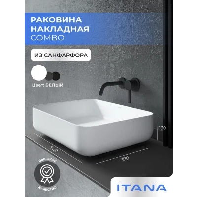 Раковина накладная для ванной ITANA COMBO Белый глянец