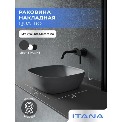 Раковина накладная для ванной ITANA QUADRO Серый матовый