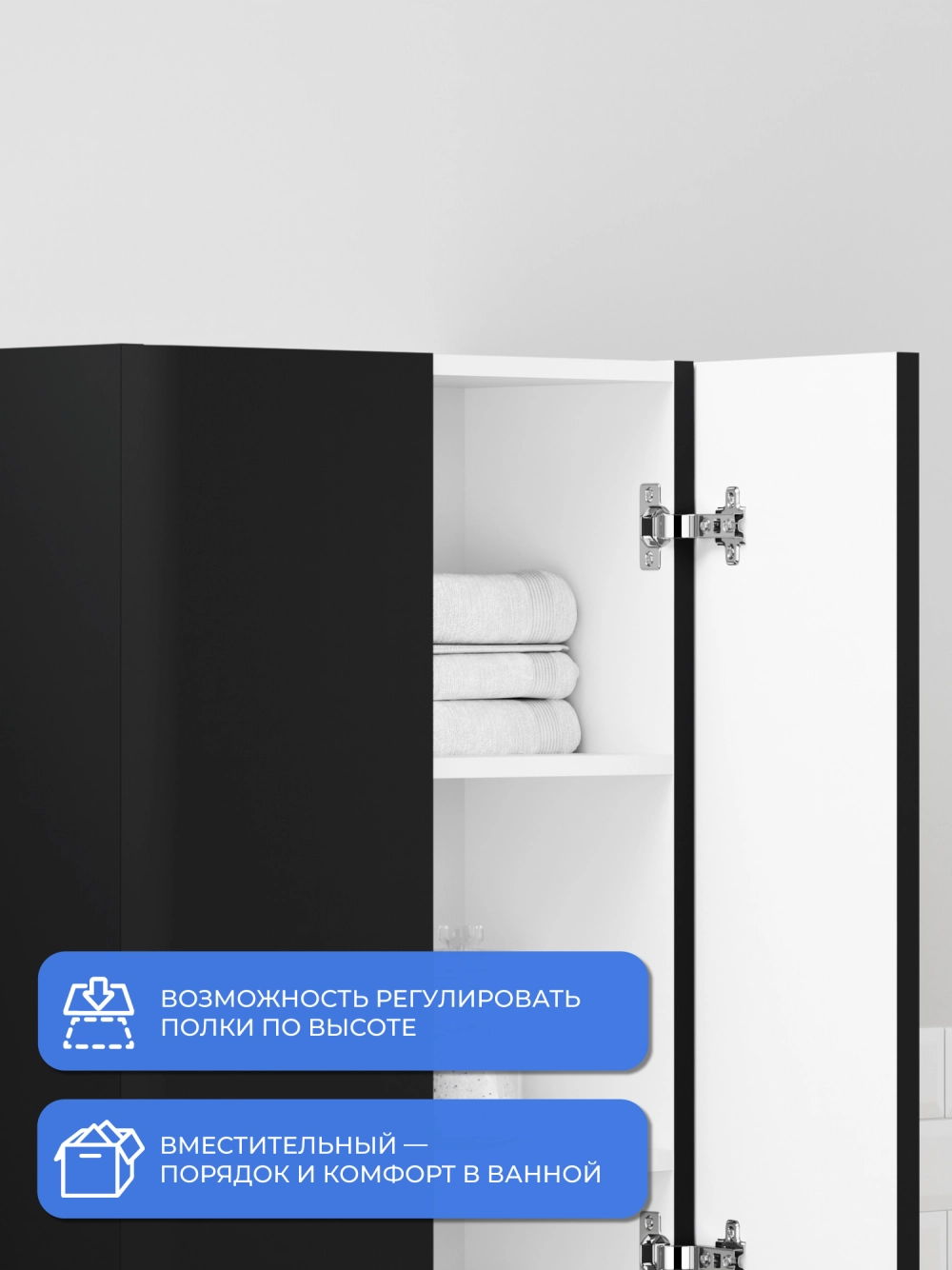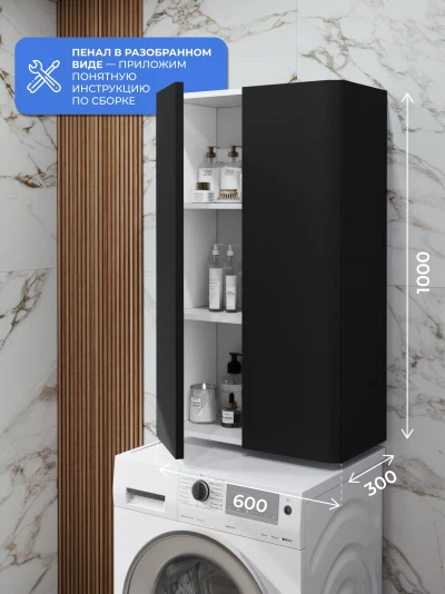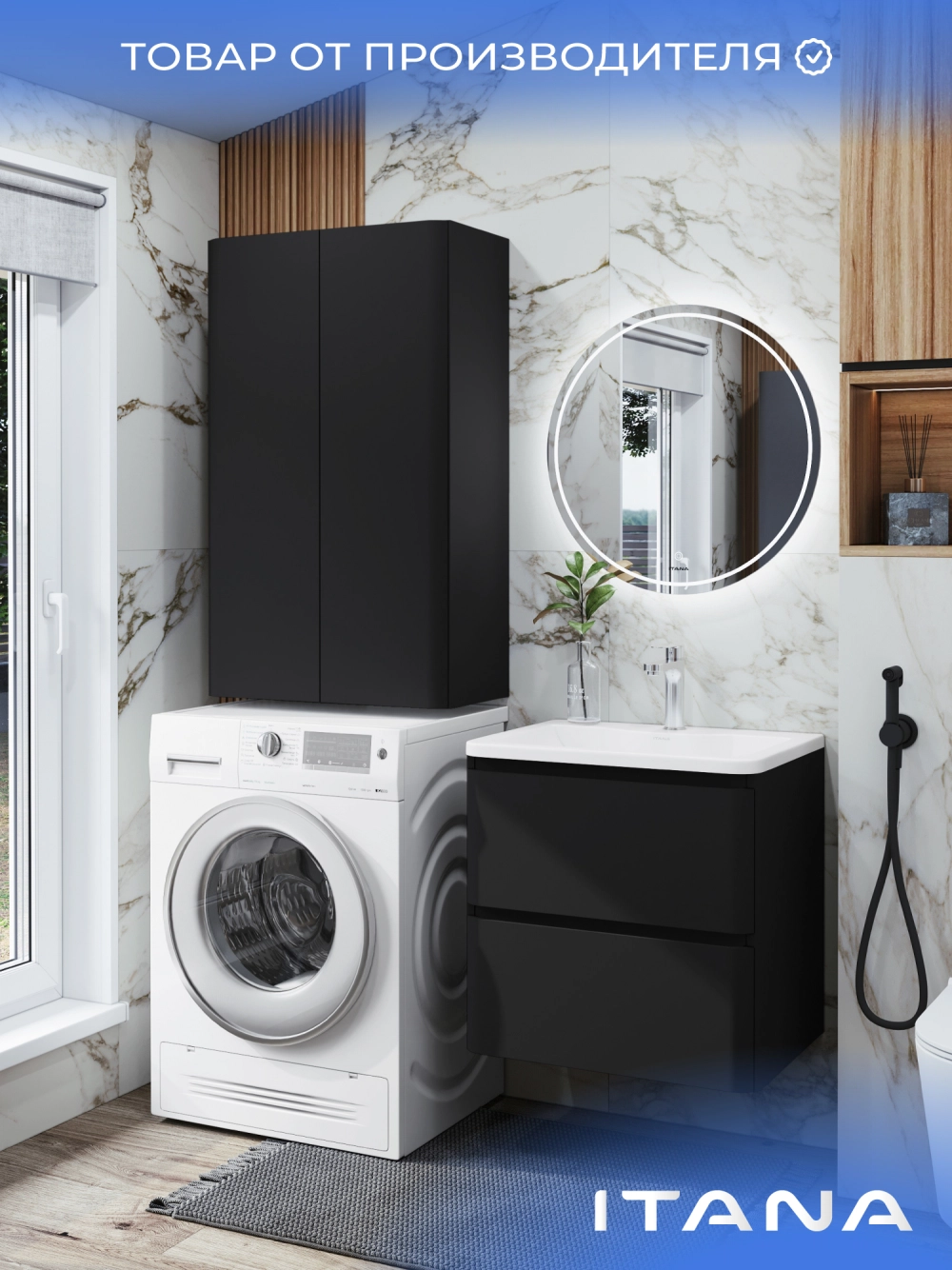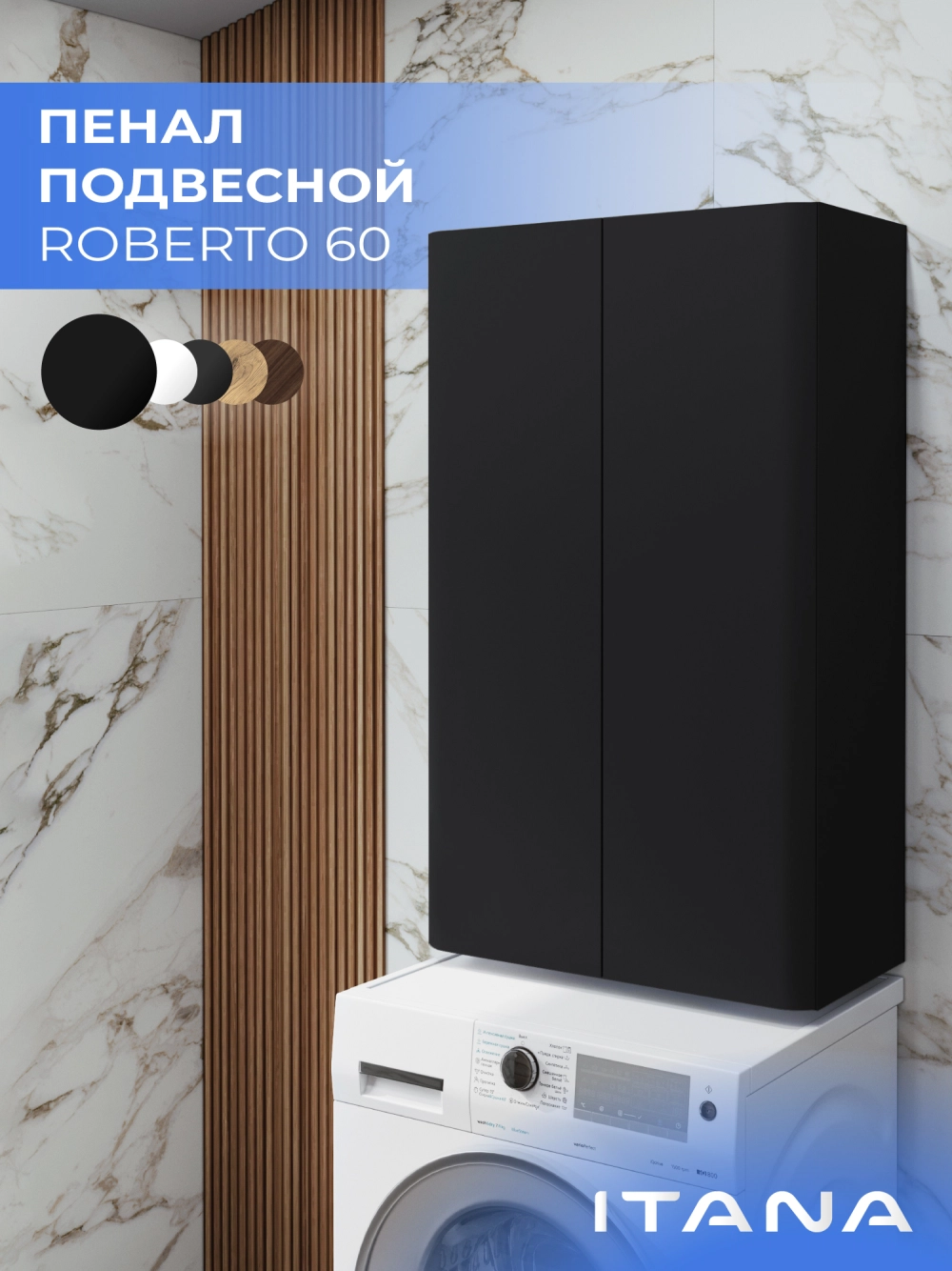 Шкаф над стиральной машиной ИТАНА Роберто 60, подвесной, Черный софт