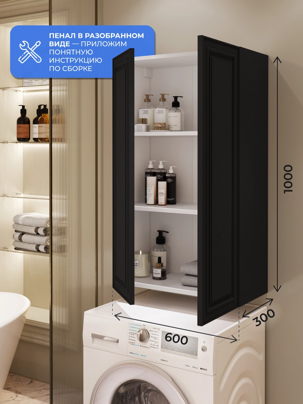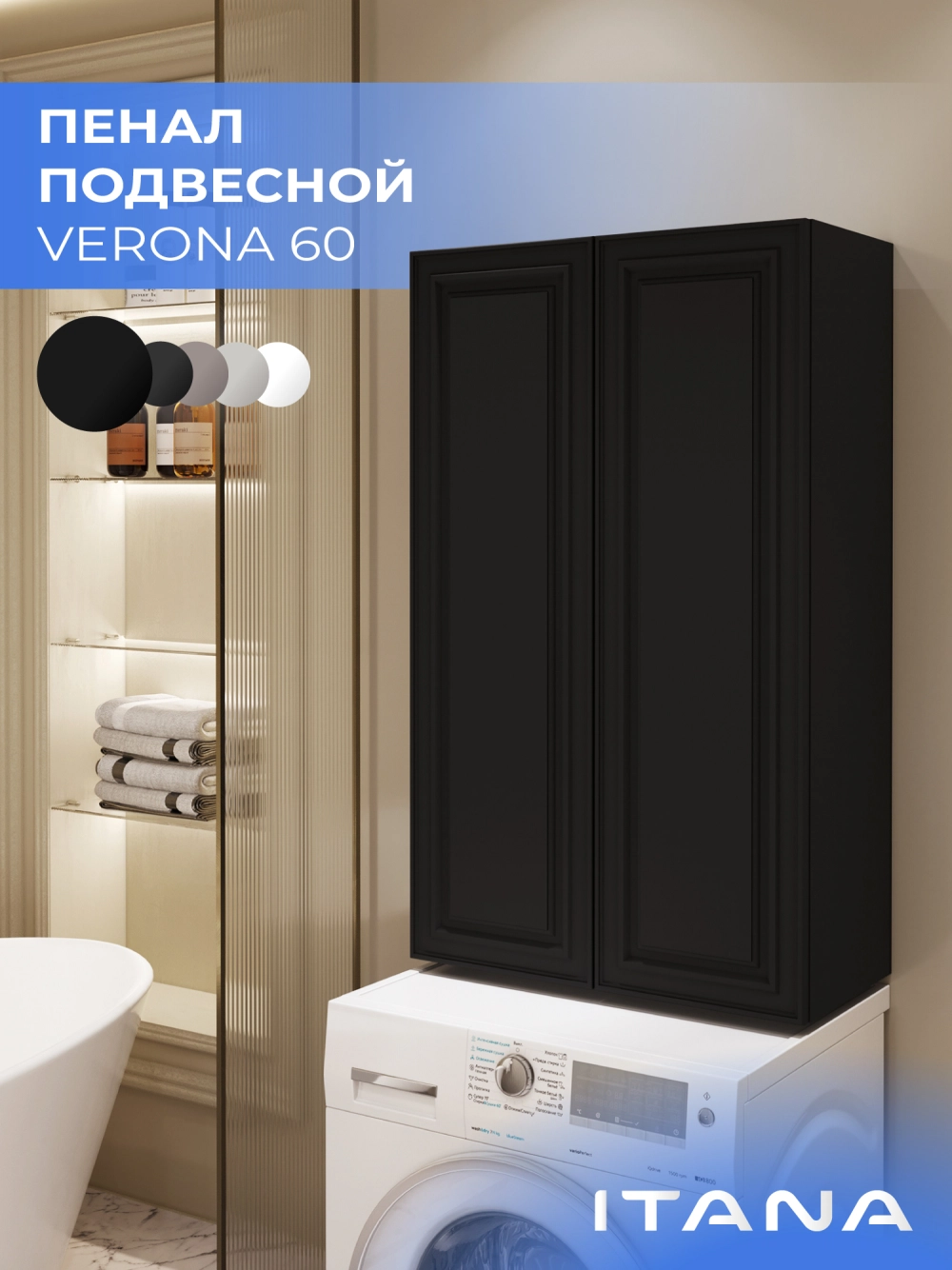Шкаф над стиральной машиной ИТАНА Верона 2.0 60, подвесной, Черный софт