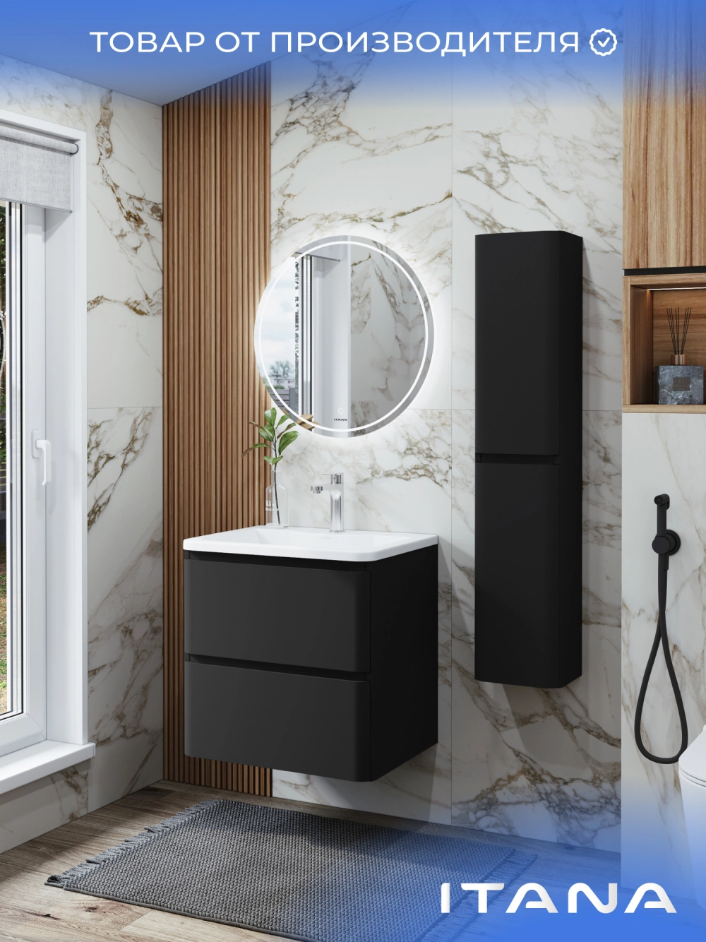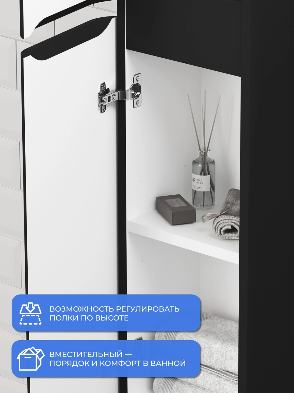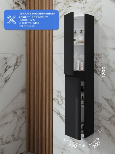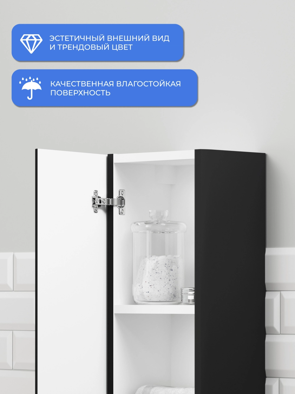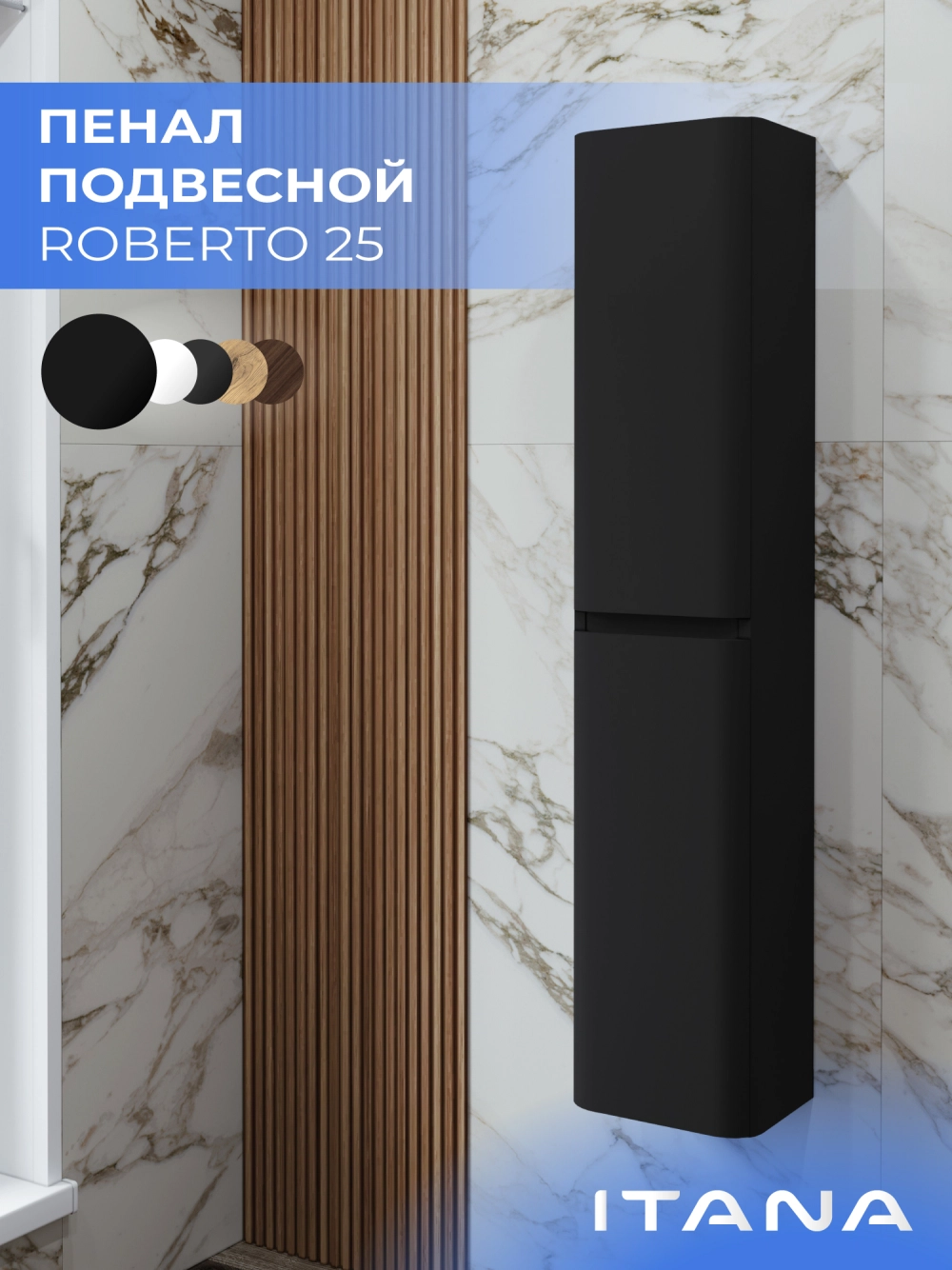 Шкаф пенал ИТАНА Роберто 25, подвесной, Черный софт