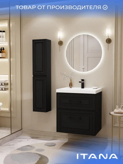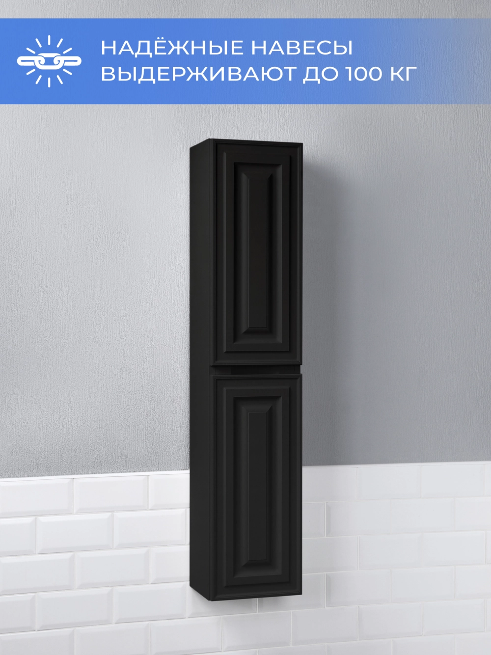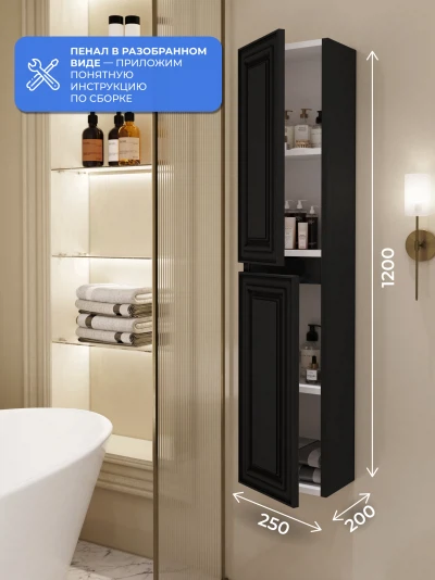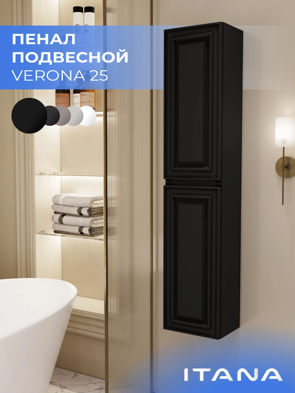 Шкаф пенал ИТАНА Верона 2.0 25, подвесной, Черный софт