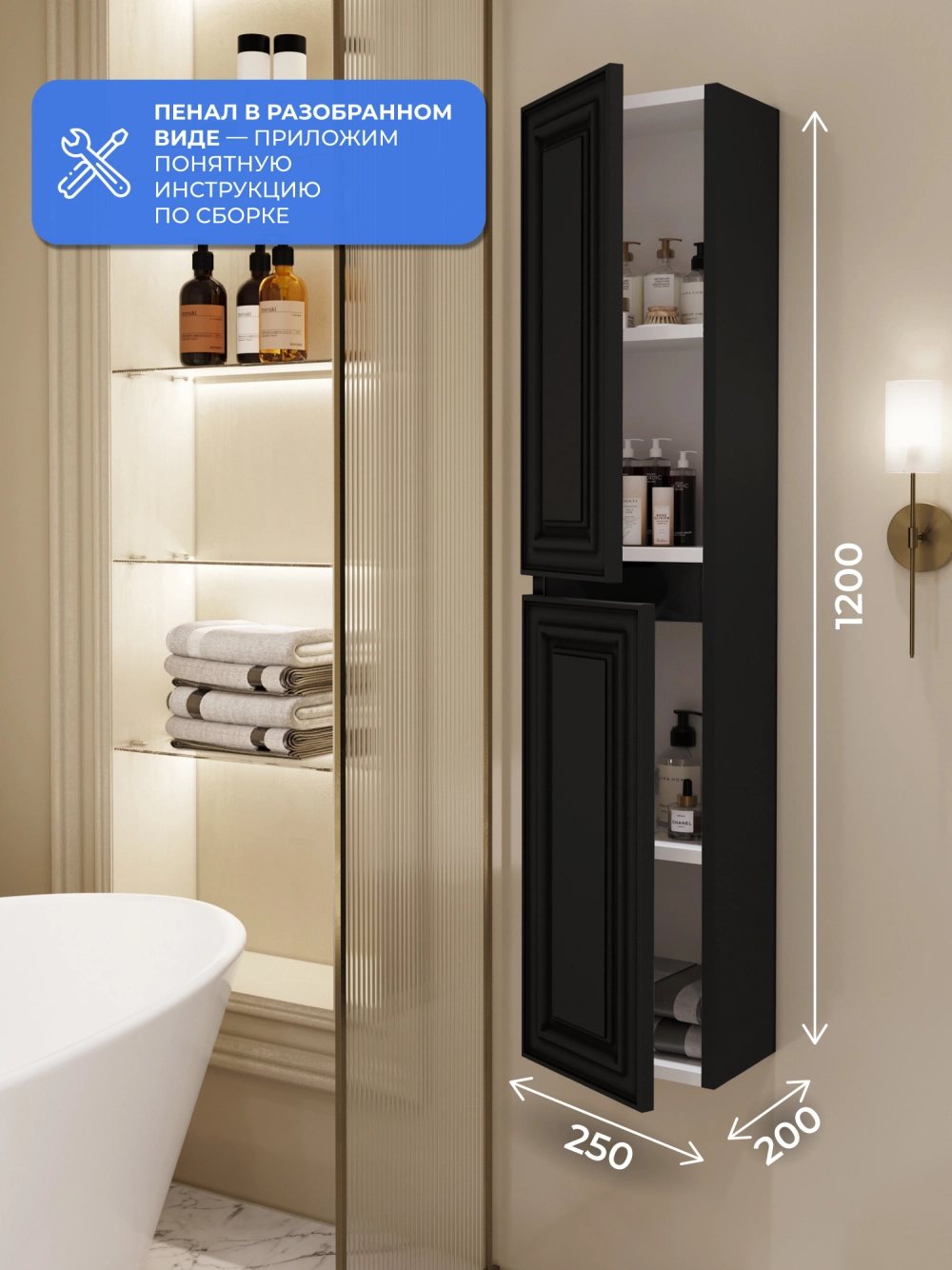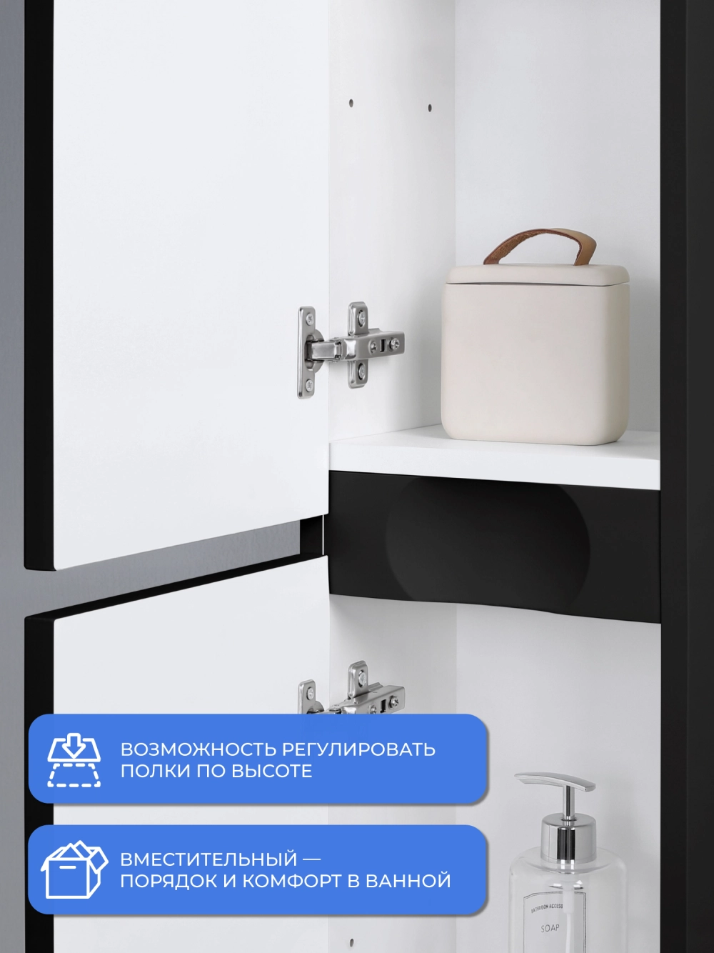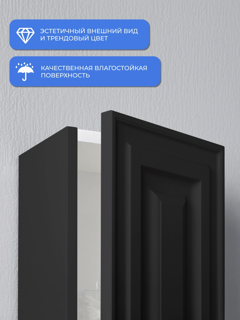Шкаф пенал ИТАНА Верона 2.0 25, подвесной, Черный софт
