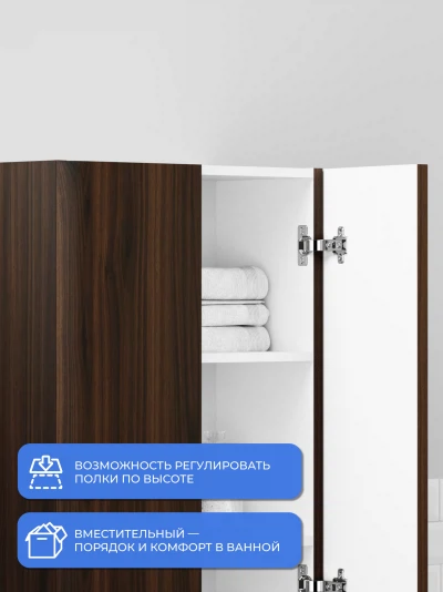 Пенал в ванную из коллекции Роберто 60 в стиле модерн с удобной организацией внутреннего пространства шкафов. Шкаф-пенал поможет создать комфортные условия в ванной комнате. Благодаря его компактным размерам 600х300х1000 он занимает немного места. Пенал в ванную изготовлен из МДФ и покрыт ПВХ пленкой, что обеспечивает ему привлекательный внешний вид, а также износостойкость и долговечность. Качественная фурнитура с доводчиками обеспечивает легкое открывание и плавное закрывание дверок. Внутри пенала для ванной полки, где можно рационально распределить и разместить все необходимые вещи для ванной комнаты. Полки пенала легко переставить, возможно регулировать расстояние их между собой. Для точного выбора пенала в ванную комнату рекомендуем обратиться к схеме замеров, которая находится на фото в карточке товара. Размеры изделия могут отличаться +/-1 см в связи со спецификой производства. Дополнить комплект можно тумбой с раковиной и зеркалом из коллекции Роберто. Изделия коллекции качественные, функциональные и органически впишутся в популярные и современные интерьерные решения для ванных комнат.