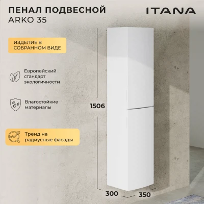 Навесной пенал с радиусными фасадами Итана Arko 35 – это идеальное решение для организации пространства в вашей ванной комнате. Благодаря своим компактным размерам 350х300х1506 мм, этот шкаф-пенал легко впишется в любой интерьер, не занимая лишнего места. Радиусные фасады добавляют утонченности и мягкости линиям, что делает его непревзойденным элементом декора. Этот шкаф для ванной изготовлен из высококачественных износостойких материалов, что обеспечивает долговечность и надежность. Внутреннее пространство пенала оснащено удобными полками, где вы сможете хранить все необходимые банные принадлежности, косметику и прочие мелкие предметы. Универсальность навесного монтажа позволяет разместить этот шкаф в ванной на любой удобной высоте, создавая дополнительное место для хранения даже в самых ограниченных пространствах. Благодаря стильному и современному дизайну, пенал идеально подойдет как для классических, так и для современных интерьеров. Шкаф в ванную Итана Arko 35 сочетает в себе функциональность и эстетичность, обеспечивая удобство и комфорт каждодневного пользования. Пенал в ванную комнату – это незаменимый элемент, который поможет вам поддерживать порядок и организованность, делая ваше утро более приятным и беззаботным. Важно отметить, что шкаф-пенал в ванную Итана Arko 35 не требует особого ухода: достаточно периодически протирать его мягкой тканью для поддержания первоначального вида. Если вы ищете стильный, удобный и надежный шкаф-пенал для ванной комнаты - этот вариант станет идеальным выбором для вас.