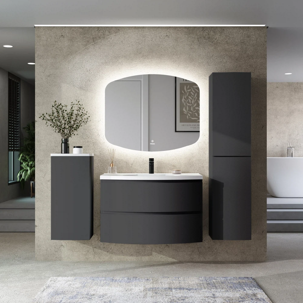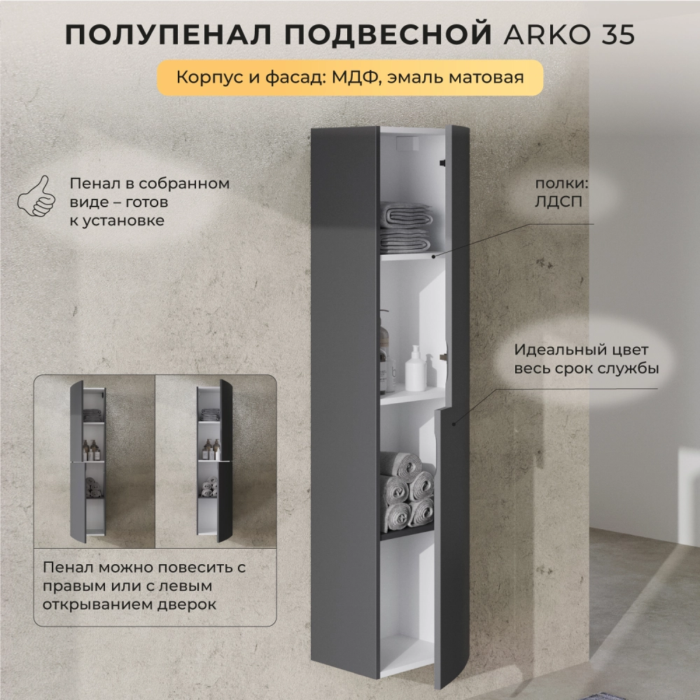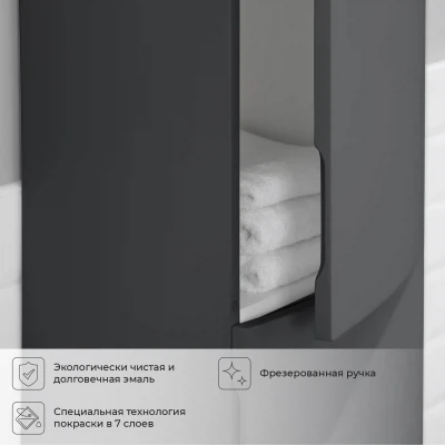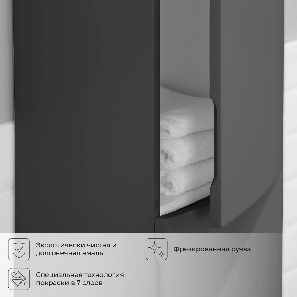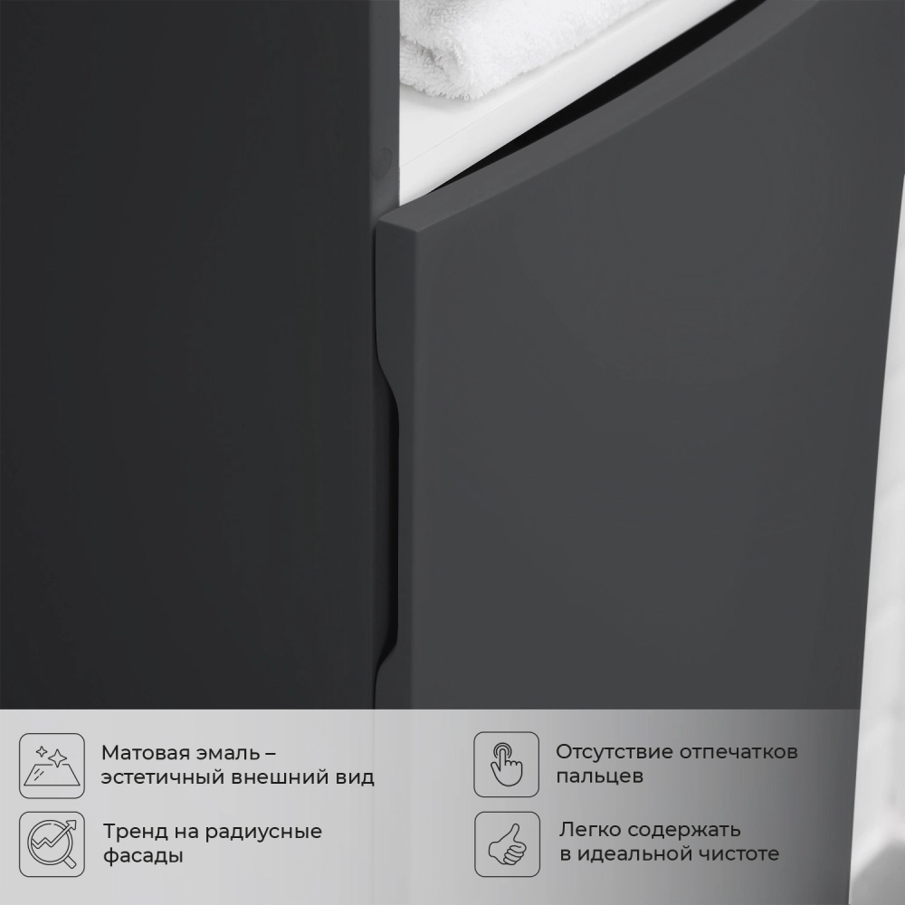 Шкаф пенал для ванной Итана Arko 35 с радиусными фасадами Эмаль Графит навесной