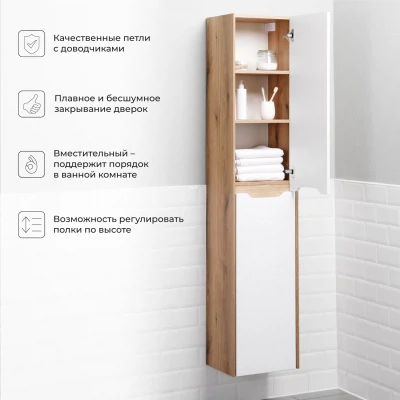 Шкаф пенал для ванной подвесной Итана Nill 35 Белый глянец