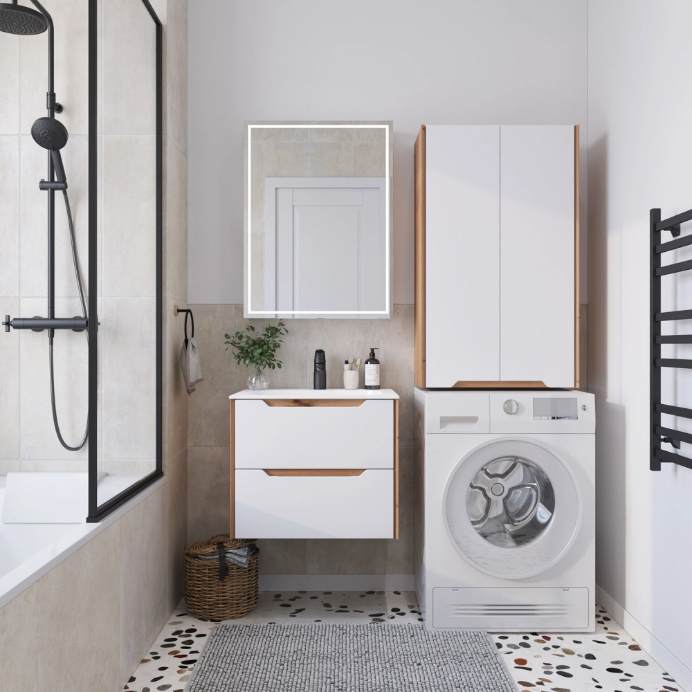Шкаф пенал для ванной подвесной Итана Nill 60 Белый глянец